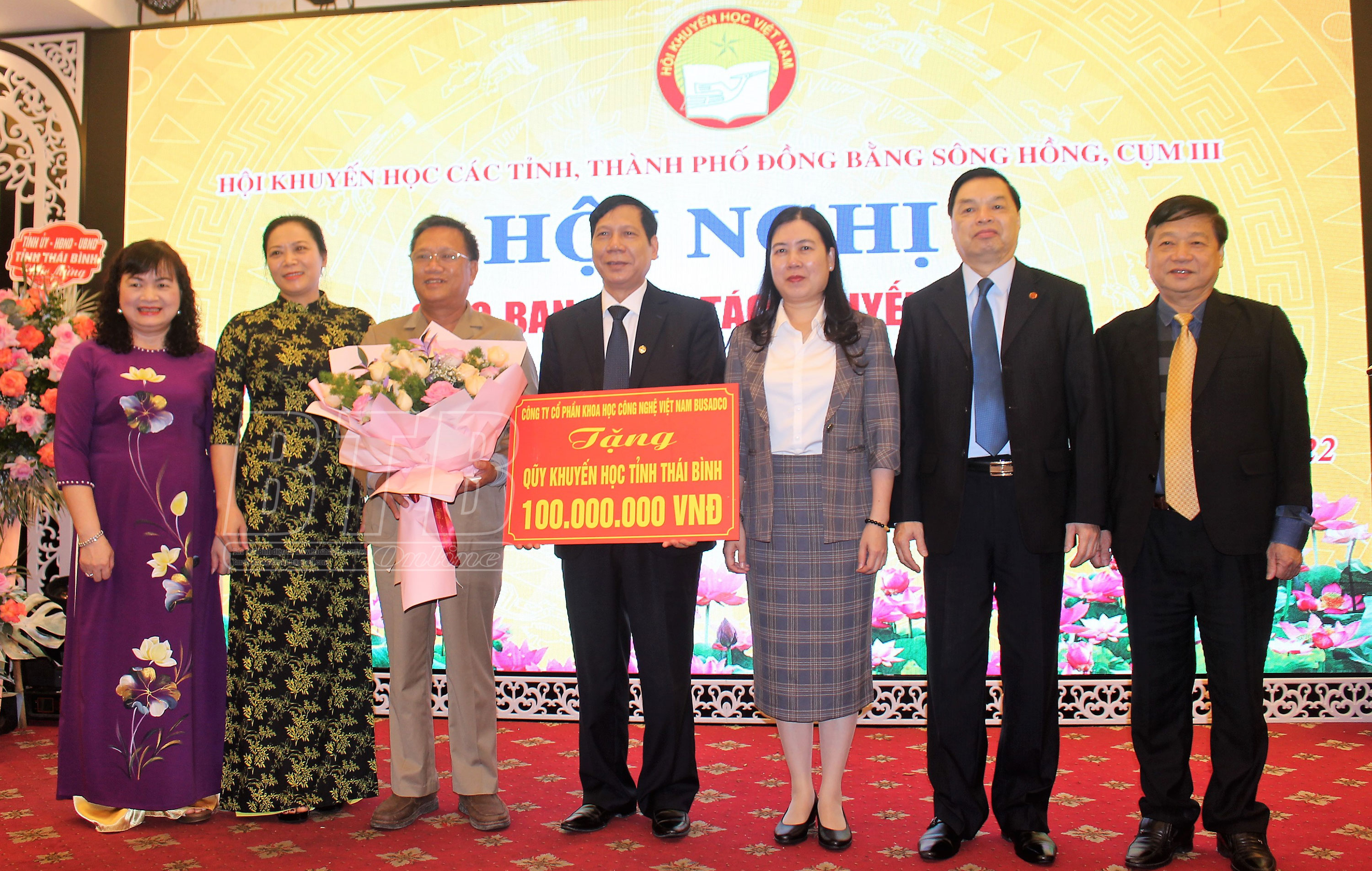 Nhân dịp này, Công ty Cổ phần Khoa học công nghệ Việt Nam Busadco đã trao tặng Quỹ khuyến học tỉnh Thái Bình số tiền 100 triệu đồng.