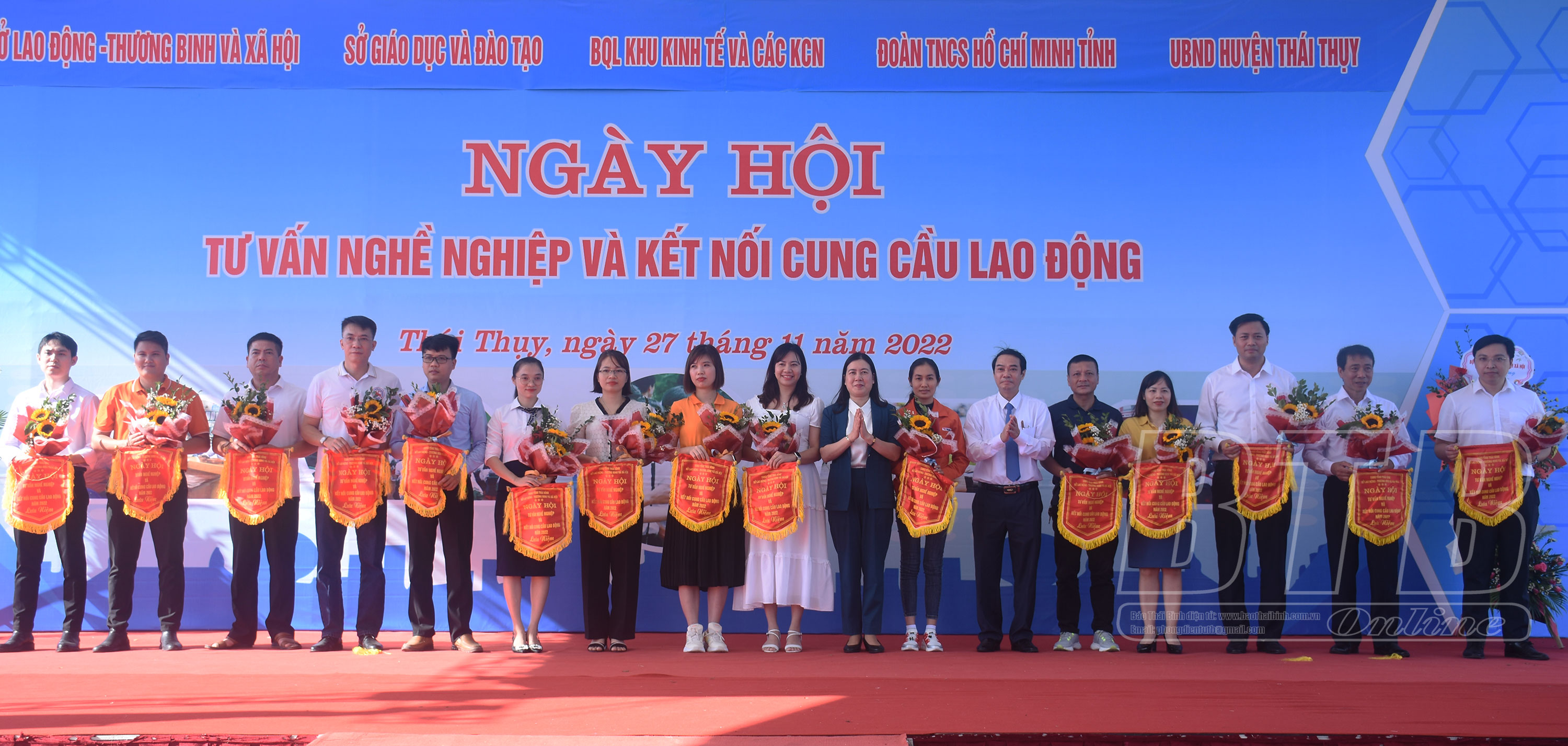 Dự ngày hội có các đồng chí: Vũ Trọng Bình, Cục trưởng Cục Việc làm, Bộ Lao Động – Thương binh và Xã hội; Trần Thị Bích Hằng, Tỉnh ủy viên, Phó Chủ tịch UBND tỉnh; lãnh đạo các sở, ngành, huyện Thái Thụy cùng 180 doanh nghiệp, các cơ sở đào tạo, cơ sở giáo dục nghề nghiệp và gần 2.000 học sinh, sinh viên các trường đại học, cao đẳng, trung cấp nghề, THPT, trung tâm giáo dục nghề nghiệp, giáo dục thường xuyên trong và ngoài tỉnh.