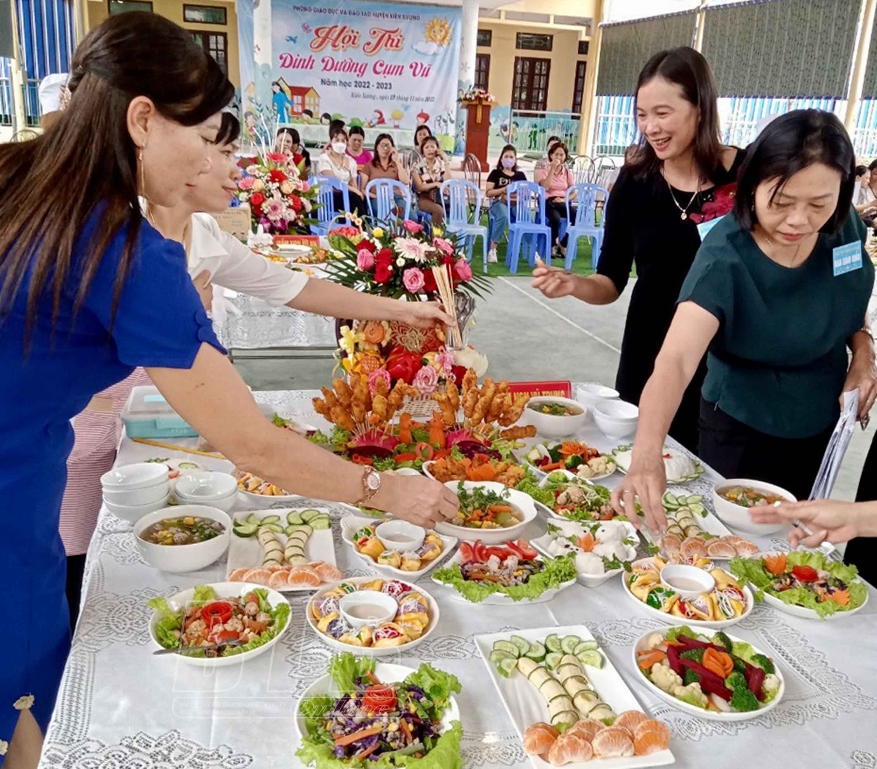 Tại hội thi, giáo viên các trường mầm non trong huyện đã thể hiện kiến thức về dinh dưỡng, chế biến bảo quản, vệ sinh an toàn thực phẩm cho trẻ trong độ tuổi mầm non. Đồng thời thể hiện tài năng, sự khéo léo qua việc lựa chọn và chế biến thực đơn bữa chính, bữa phụ gồm các món ăn cân đối, đầy đủ các chất dinh dưỡng cho trẻ tại trường. Thực đơn của mỗi đội thi đều khác nhau, thực phẩm tươi ngon, bảo đảm chất lượng và an toàn, đồng thời được chế biến bảo đảm đúng quy trình vệ sinh an toàn thực phẩm. Nhiều đội thi đã có sự tìm tòi, sáng tạo, đưa ra các ý tưởng và chế biến được nhiều món ăn mới áp dụng được trong việc thay đổi thực đơn cho trẻ tại nhà trường. Các món ăn được trang trí đẹp mắt làm tăng thêm độ hấp dẫn của món ăn, tạo cho trẻ hứng thú với món ăn.