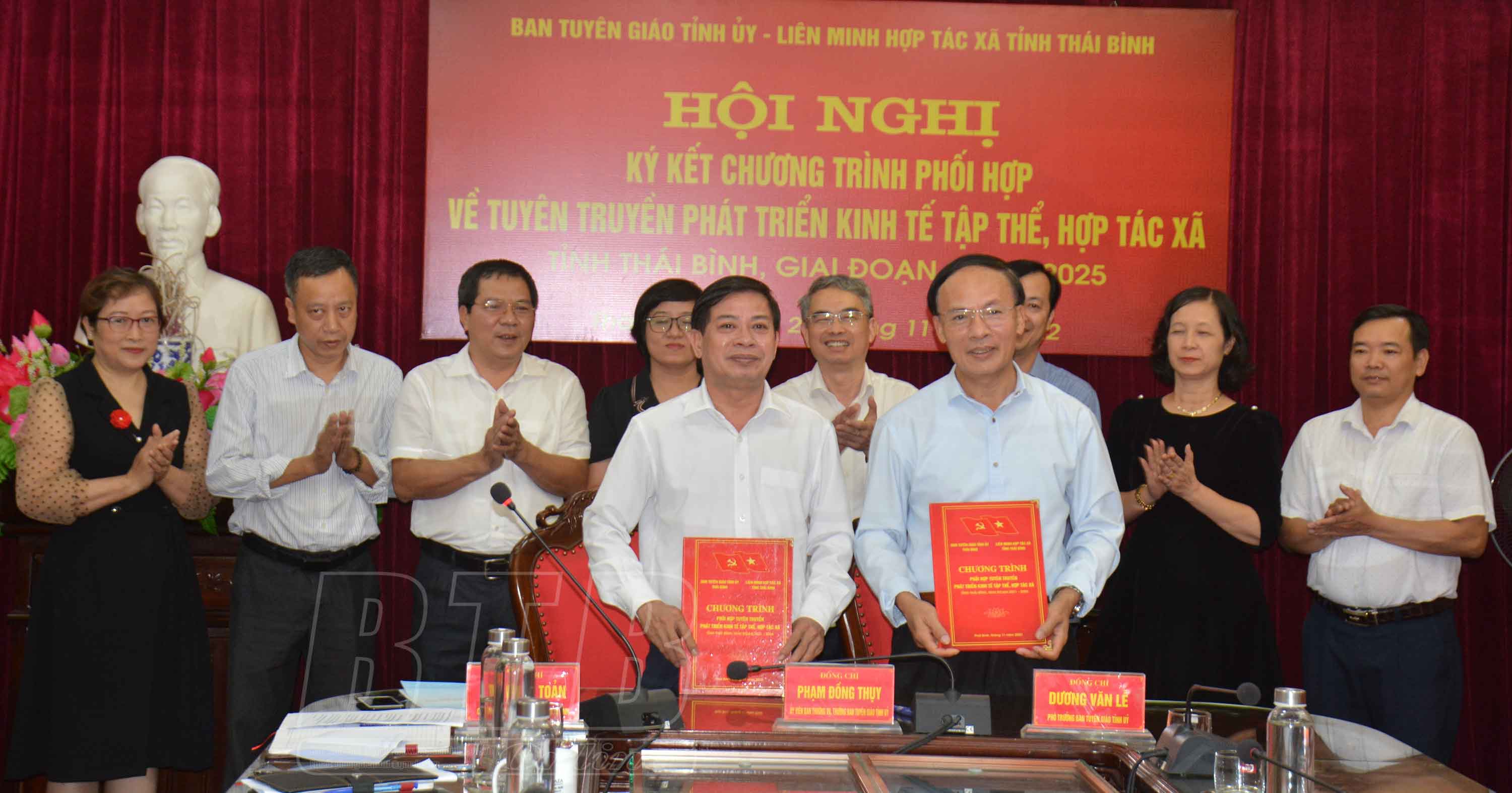 Chiều ngày 29/11, Ban Tuyên giáo Tỉnh ủy và Liên minh hợp tác xã tỉnh tổ chức hội nghị ký kết chương trình phối hợp về tuyên truyền phát triển kinh tế tập thể, hợp tác xã, giai đoạn 2021-2025. Đồng chí Phạm Đồng Thụy, Ủy viên Ban Thường vụ, Trưởng ban Tuyên giáo Tỉnh ủy dự hội nghị.