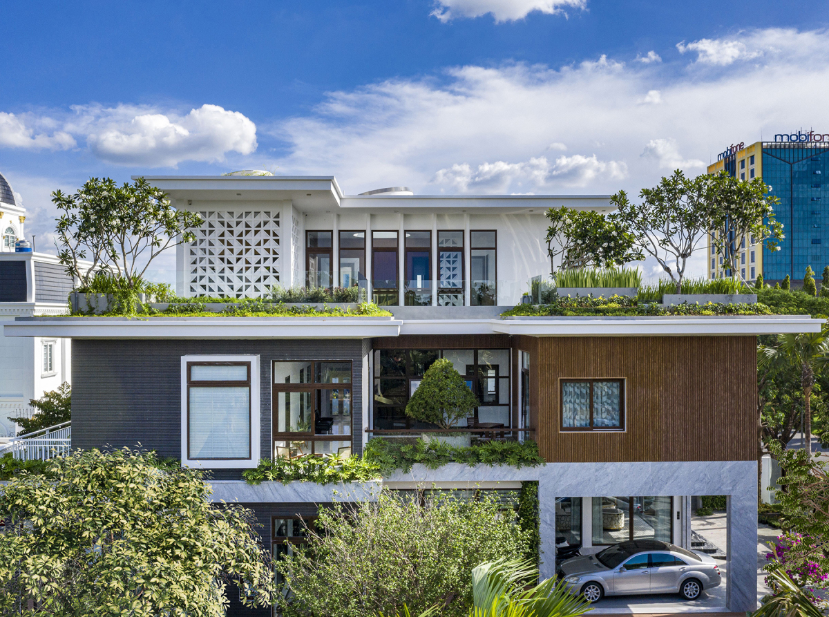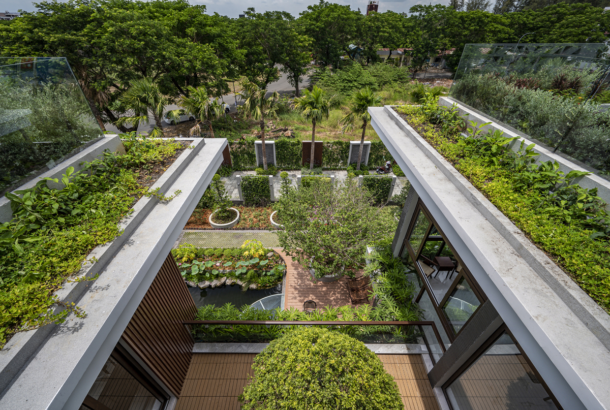 Căn biệt thự được áp dụng hàng loạt giải pháp điều hòa vi khí hậu và thân thiện với môi trường, là công trình đạt chứng nhận Lotus Gold cho thể loại Nhà ở của Hội đồng công trình Xanh Việt Nam.
