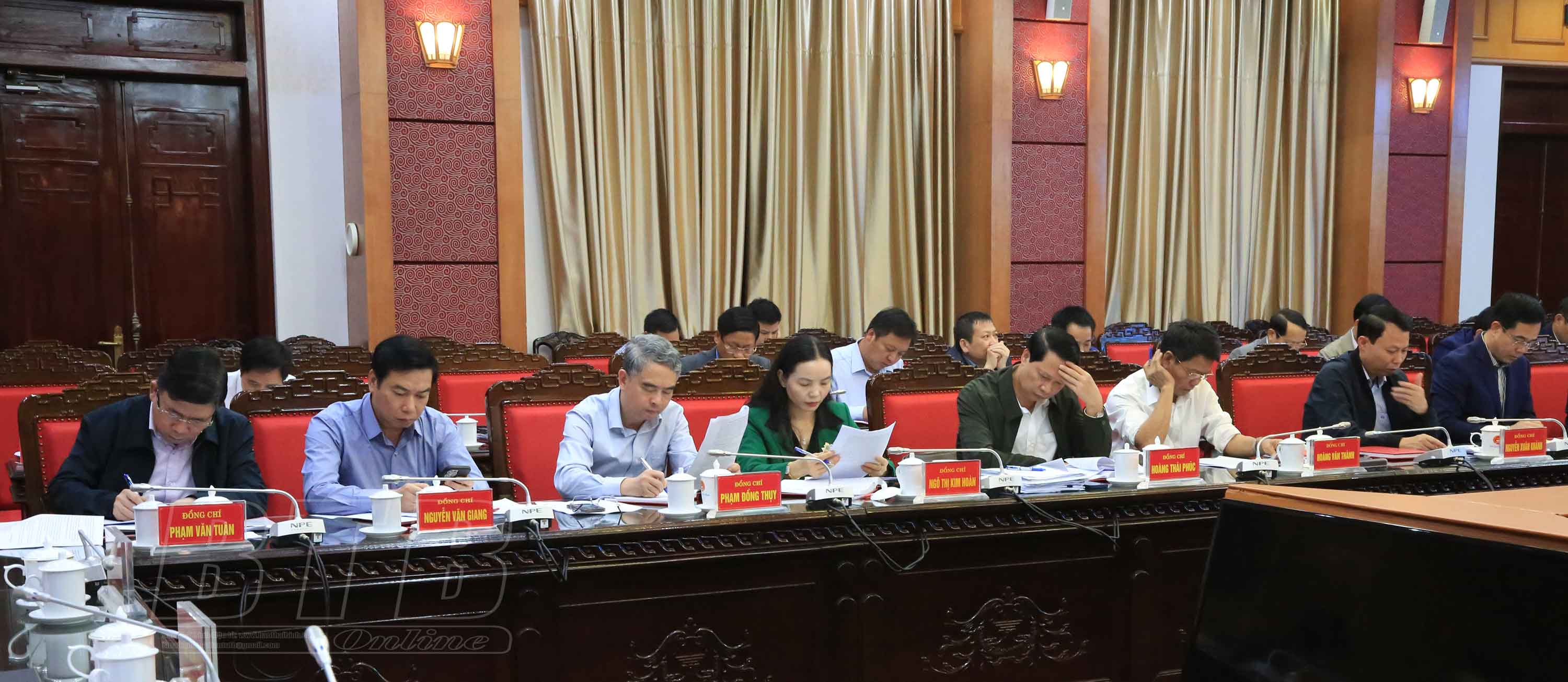 Các đồng chí: Ngô Đông Hải, Ủy viên Ban Chấp hành Trung ương Đảng, Bí thư Tỉnh ủy; Nguyễn Tiến Thành, Phó Bí thư thường trực Tỉnh ủy, Chủ tịch HĐND tỉnh; Nguyễn Khắc Thận, Phó Bí thư Tỉnh ủy, Chủ tịch UBND tỉnh chủ trì hội nghị. Các đồng chí Ủy viên Ban Thường vụ Tỉnh ủy; lãnh đạo HĐND, UBND tỉnh, Đoàn đại biểu Quốc hội tỉnh; lãnh đạo các sở, ngành, địa phương dự hội nghị.
