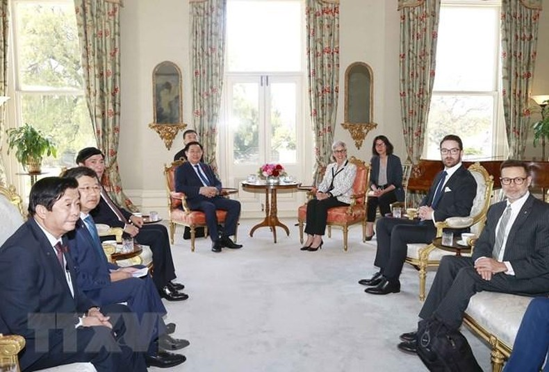 Tại cuộc gặp Thống đốc bang Victoria Linda Dessau, Chủ tịch Quốc hội Vương Đình Huệ đã chúc mừng các thành tựu của bang Victoria trong việc kiểm soát, đẩy lùi dịch Covid-19, duy trì tăng trưởng kinh tế tốt cũng như tổ chức thành công cuộc bầu cử tháng 11 vừa qua.