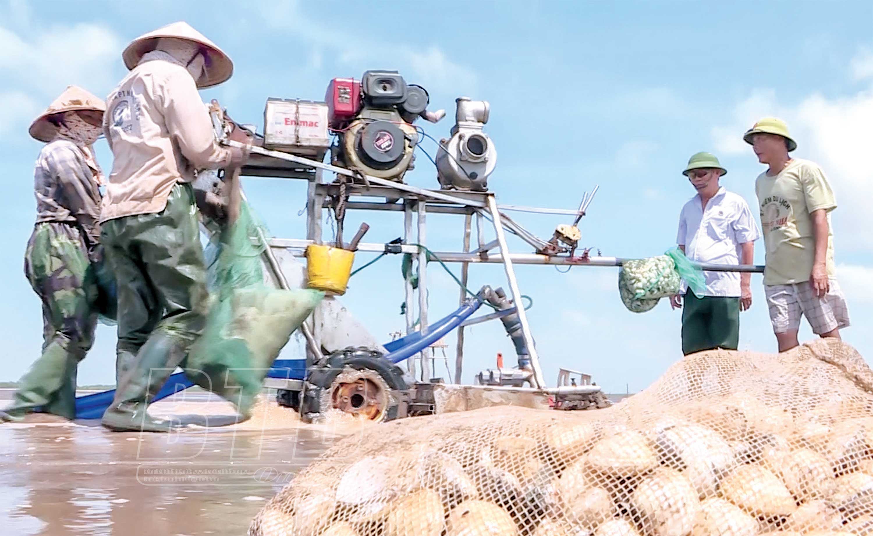 Mô hình nuôi ngao của cựu chiến binh Nguyễn Đình Thường, xã Đông Hoàng (Tiền Hải) cho thu nhập cao. Ảnh: Tiến Đạt