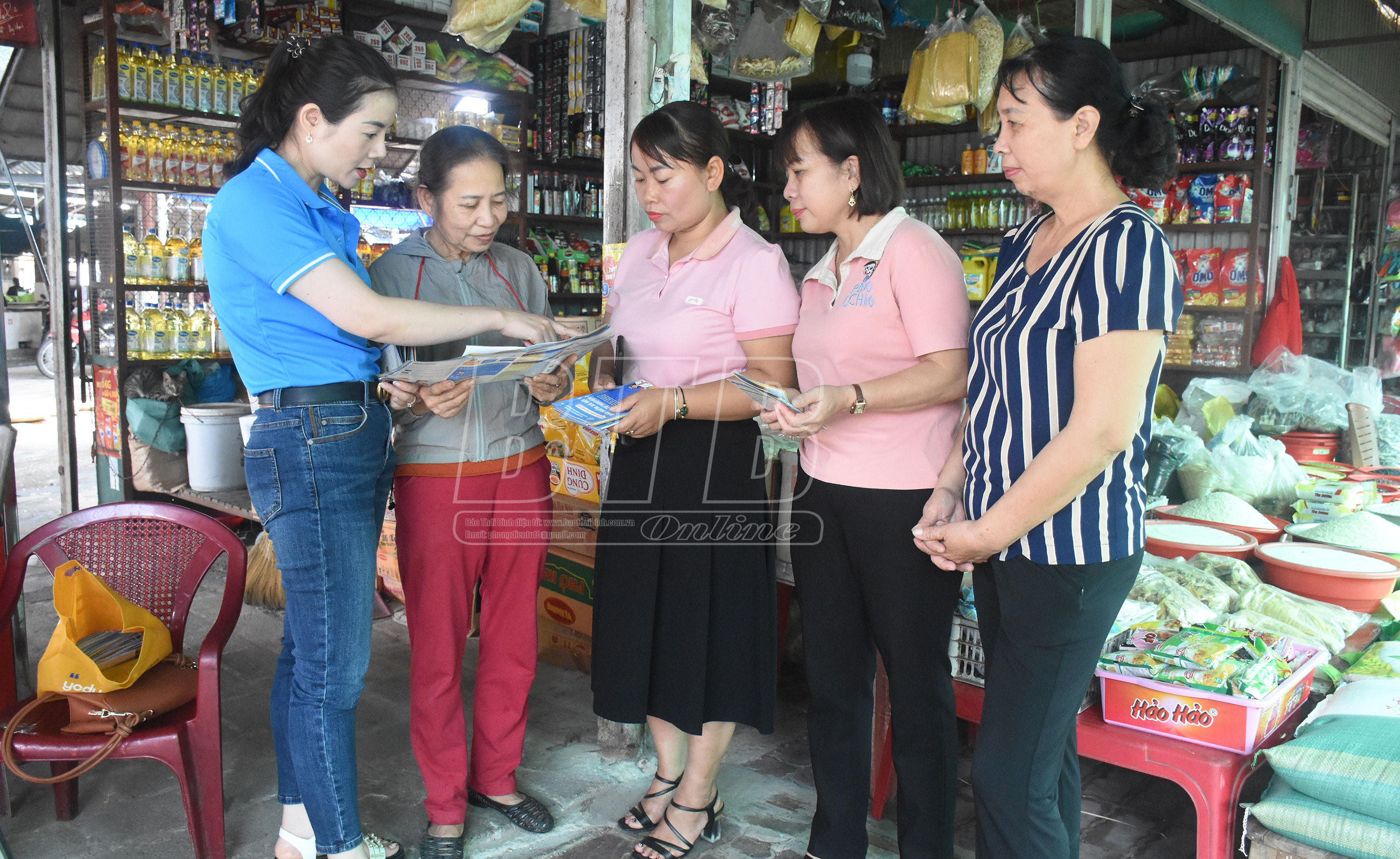 Cán bộ BHXH huyện Vũ Thư tuyên truyền chính sách BHXH tự nguyện tới người dân.