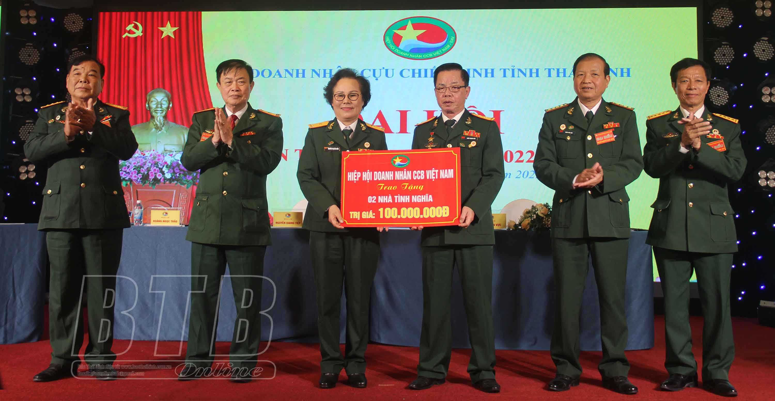 Lãnh đạo Hiệp hội Doanh nhân CCB Việt Nam trao tặng 2 nhà tình nghĩa trị giá 100 triệu đồng cho Hội Doanh nhân CCB Thái Bình.