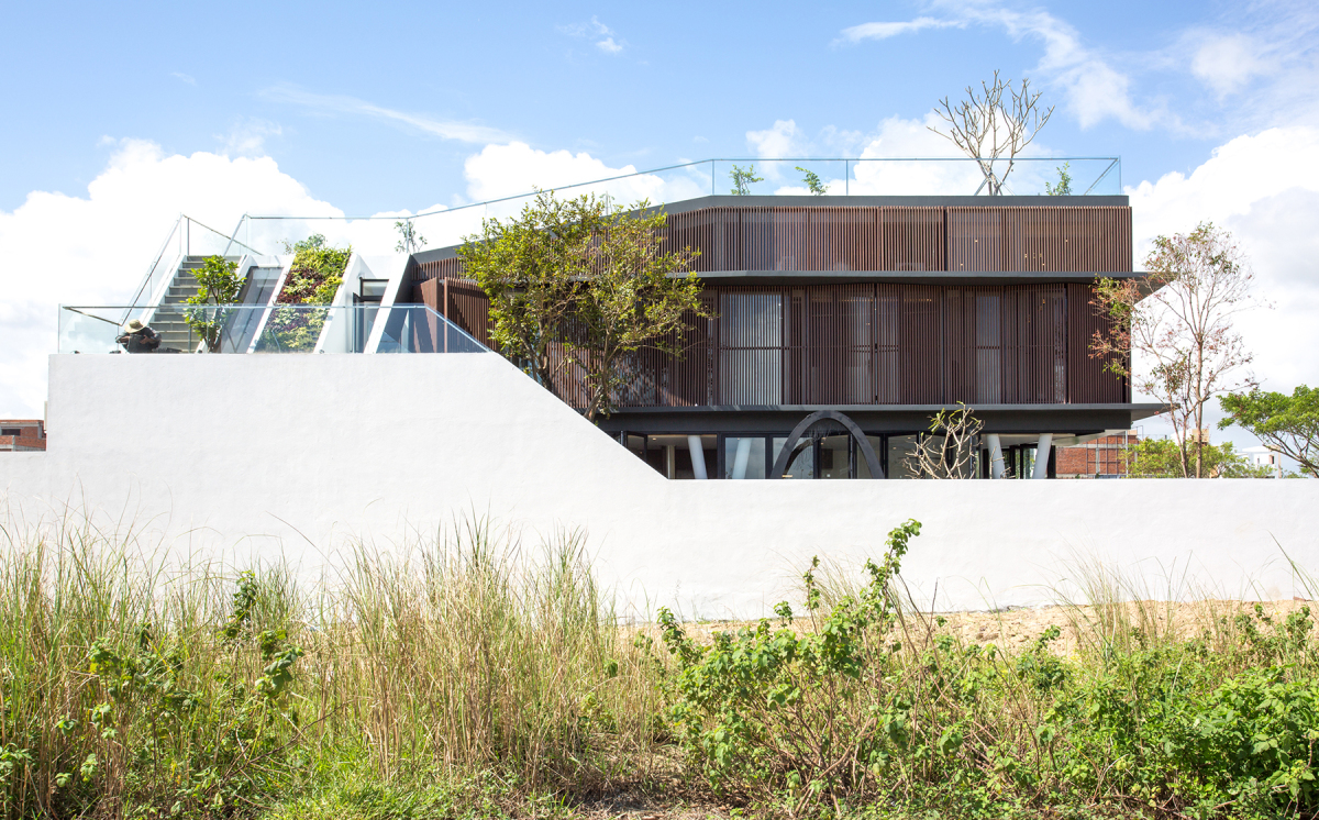 Một là giải pháp tự nhiên, dùng cây xanh làm vườn trên tường và trên mái. Hai là dùng hệ lam có tác dụng chắn bớt nắng. Thứ ba là tạo đối lưu gió bằng cách mở nhiều cửa về hướng Đông và Nam để đón gió mát. Tất cả các giải pháp trên nhằm hạn chế tác động xấu từ thời tiết và giảm thiểu năng lượng tiêu thụ điện.