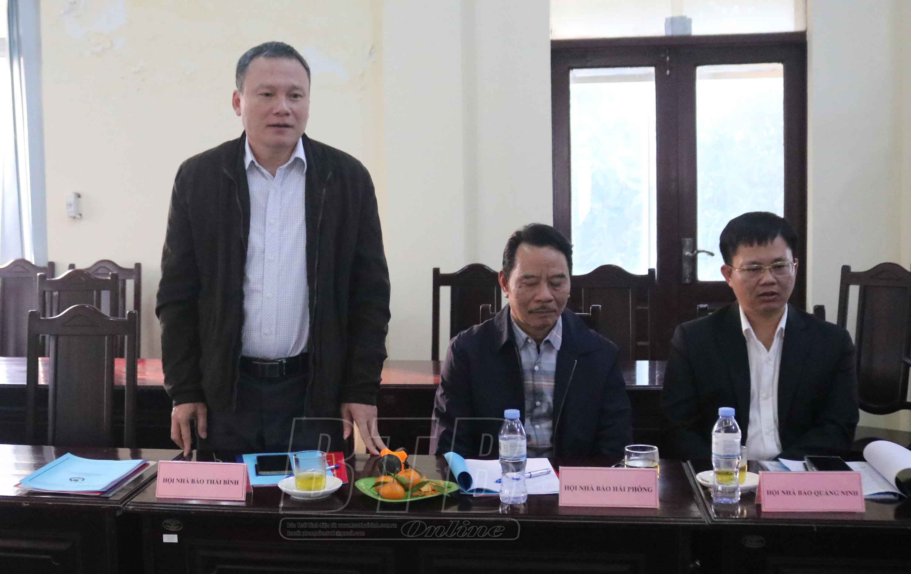 Đồng chí Hoàng Minh Sơn, Tỉnh ủy viên, Tổng Biên tập Báo Thái Bình, Chủ tịch Hội Nhà báo Thái Bình phát biểu tại hội nghị.