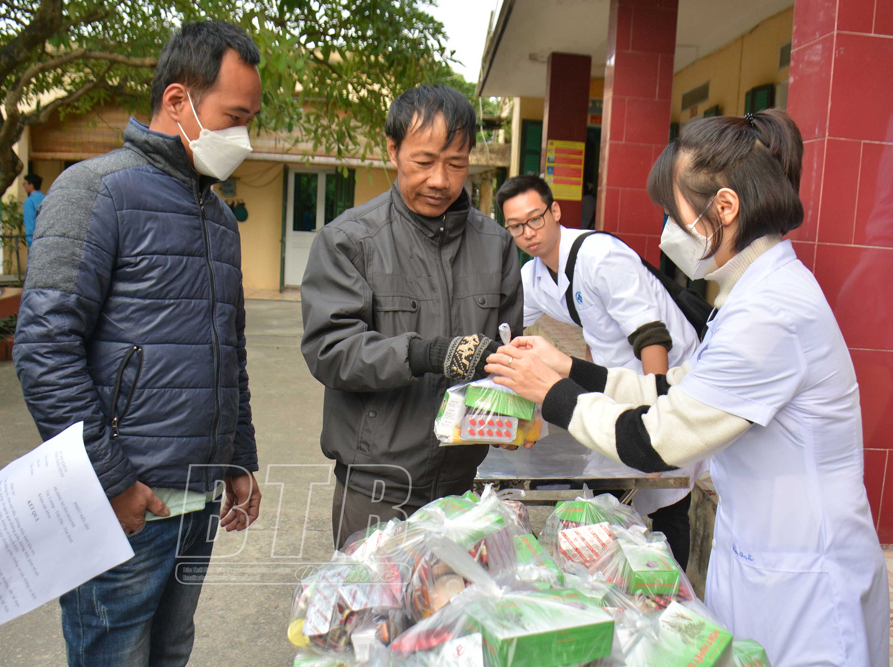 Cấp thuốc miễn phí cho người dân sau khi khám sức khỏe.