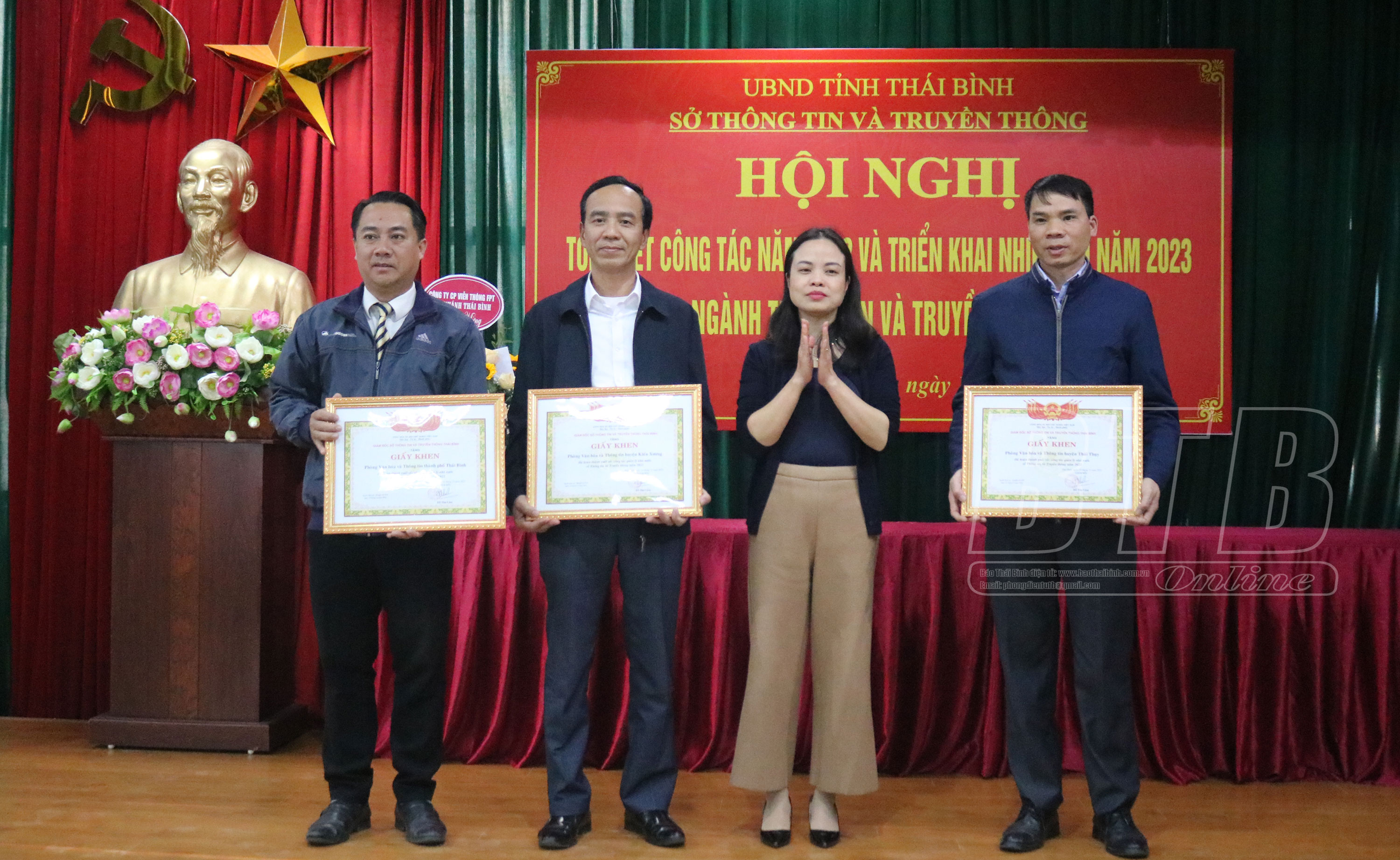 Tại hội nghị, 3 cá nhân có nhiều đóng góp cho sự phát triển của lĩnh vực thông tin và truyền thông được nhận kỷ niệm chương của Bộ Thông tin và Truyền thông; 12 tập thể có thành tích xuất sắc trong năm 2022 được Sở Thông tin và Truyền thông khen thưởng.