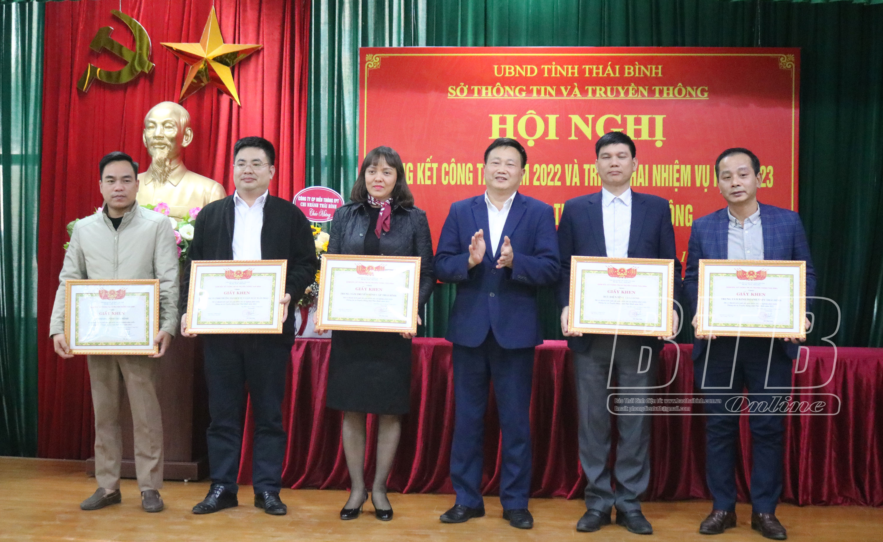 Năm 2022, ngành thông tin và truyền thông Thái Bình đã triển khai có hiệu quả các nhiệm vụ đề ra, đạt được nhiều kết quả quan trọng. Về lĩnh vực công nghệ thông tin, Sở Thông tin và Truyền thông tích cực tuyên truyền về đề án chuyển đổi số và đề án về dữ liệu dân cư... Đến nay, toàn tỉnh có 963 dịch vụ công trực tuyến được đưa lên Cổng dịch vụ công quốc gia; tỷ lệ văn bản có chữ ký số đạt 97%; các doanh nghiệp tích cực áp dụng chuyển đổi số trong quản lý để nâng cao hiệu quả sản xuất, kinh doanh. Trong lĩnh vực bưu chính, viễn thông; công nghệ thông tin; báo chí, xuất bản, phát thanh, truyền hình, thông tin điện tử thực hiện theo đúng tôn chỉ mục đích, phản ánh toàn diện các nhiệm vụ chính trị và tình hình phát triển kinh tế-xã hội trong tỉnh. Công tác thanh tra, kiểm tra đã ban hành quyết định xử phạt 4 cá nhân vi phạm trong lĩnh vực quảng cáo; kiểm tra xử lý thu gom cáp viên thông trên địa bàn thành phố...