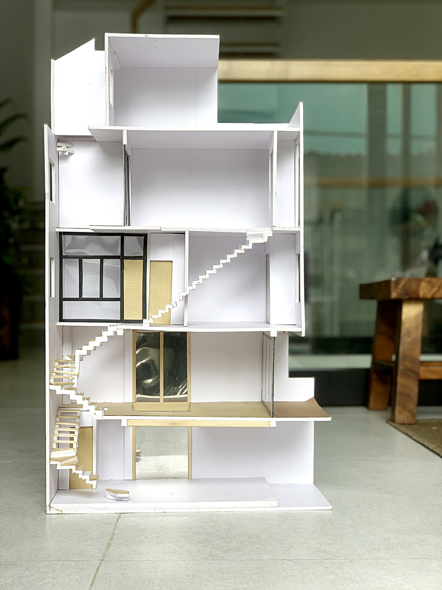 Vì vậy, ngay từ khi nung nấu xây nhà, anh dành mấy tháng tự vẽ, làm mô hình, tính hướng nắng, hướng gió tỉ mỉ. Đến khi khởi công xây nhà, anh đã làm khoảng 8 cái mô hình mới ưng ý.