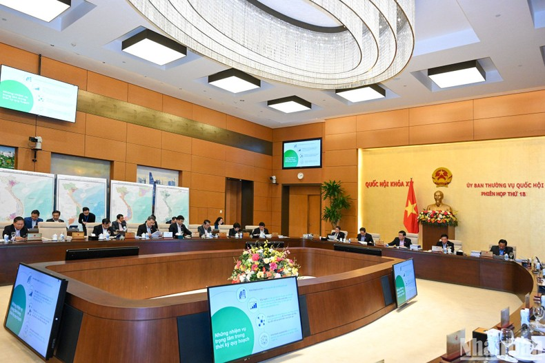 Phiên họp Ủy ban Thường vụ Quốc hội cho ý kiến về quy hoạch tổng thể quốc gia thời kỳ 2021-2030, tầm nhìn đến năm 2050. (Ảnh Duy Linh).
