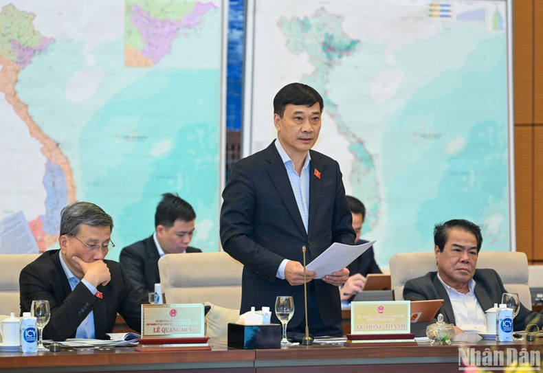 Chủ nhiệm Ủy ban Kinh tế Vũ Hồng Thanh trình bày báo cáo thẩm tra tại phiên họp. (Ảnh Duy Linh).