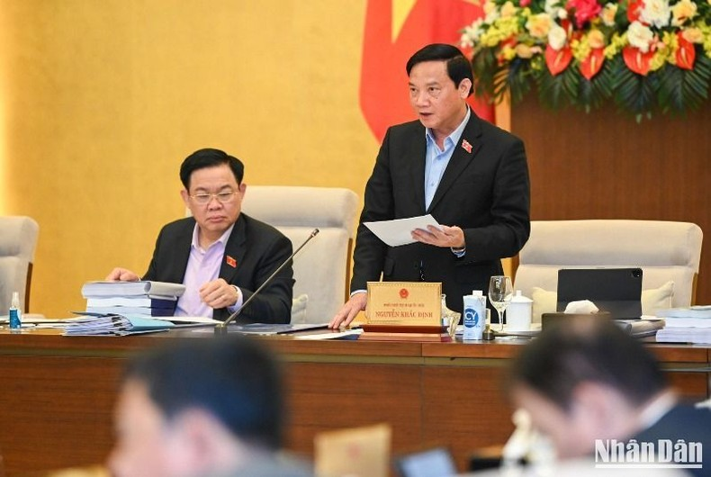 Phó Chủ tịch Quốc hội Nguyễn Khắc Định phát biểu ý kiến tại phiên họp. (Ảnh Duy Linh).