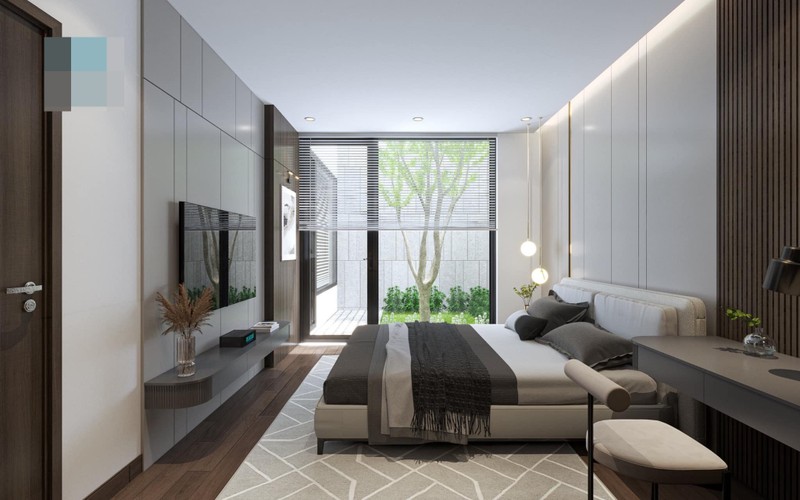 Phòng ngủ tầng 1 tràn ngập khí tươi và rất thoáng đãng. Một nơi nghỉ ngơi đúng nghĩa cho gia chủ sau những ngày đi làm căng thẳng.