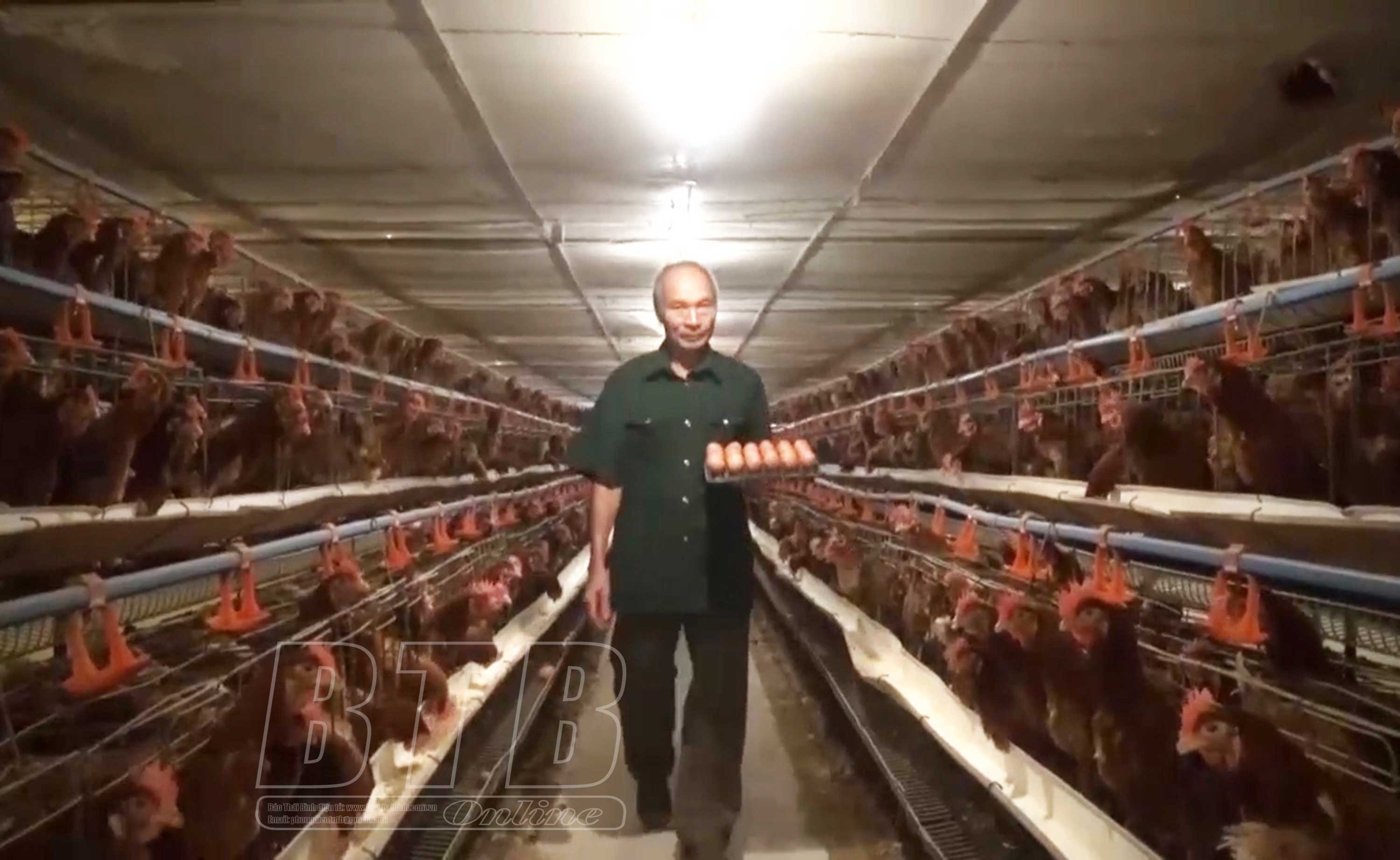Mô hình nuôi gà đẻ của hội viên CCB xã Đông Cơ, huyện Tiền Hải.