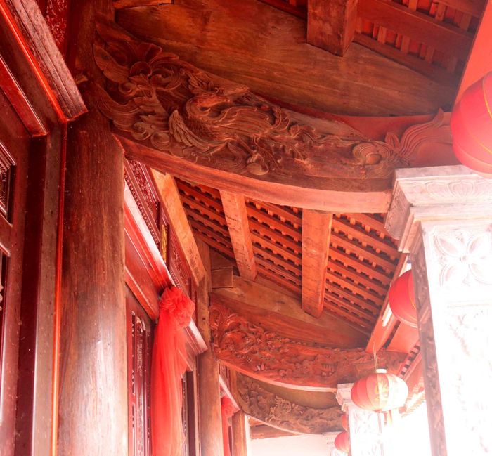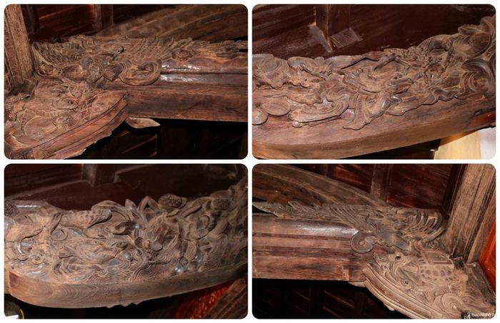 Trên khung gỗ của hạ đình, các đề tài truyền thống như "tứ linh, tứ quý" được người xưa chạm bong kênh và chạm lộng một cách tinh xảo. Đình Trung Kiên đã được công nhận là Di tích Lịch sử - Nghệ thuật cấp Quốc gia năm 1992. Ảnh: Huy Thư