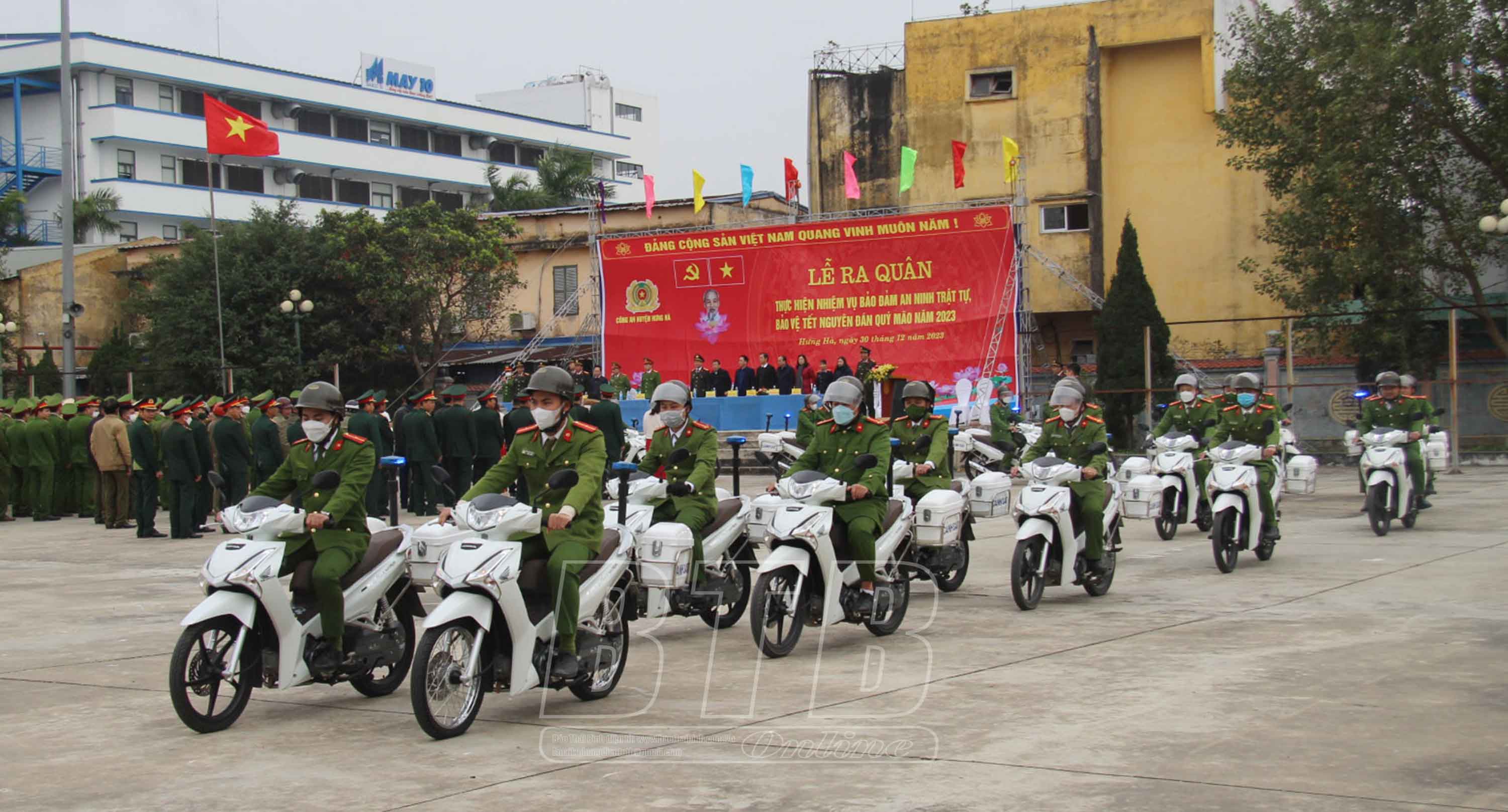 Chiều ngày 30/12, huyện Hưng Hà tổ chức lễ ra quân thực hiện nhiệm vụ bảo đảm an ninh trật tự, bảo vệ tết Nguyên đán Quý Mão năm 2023.
