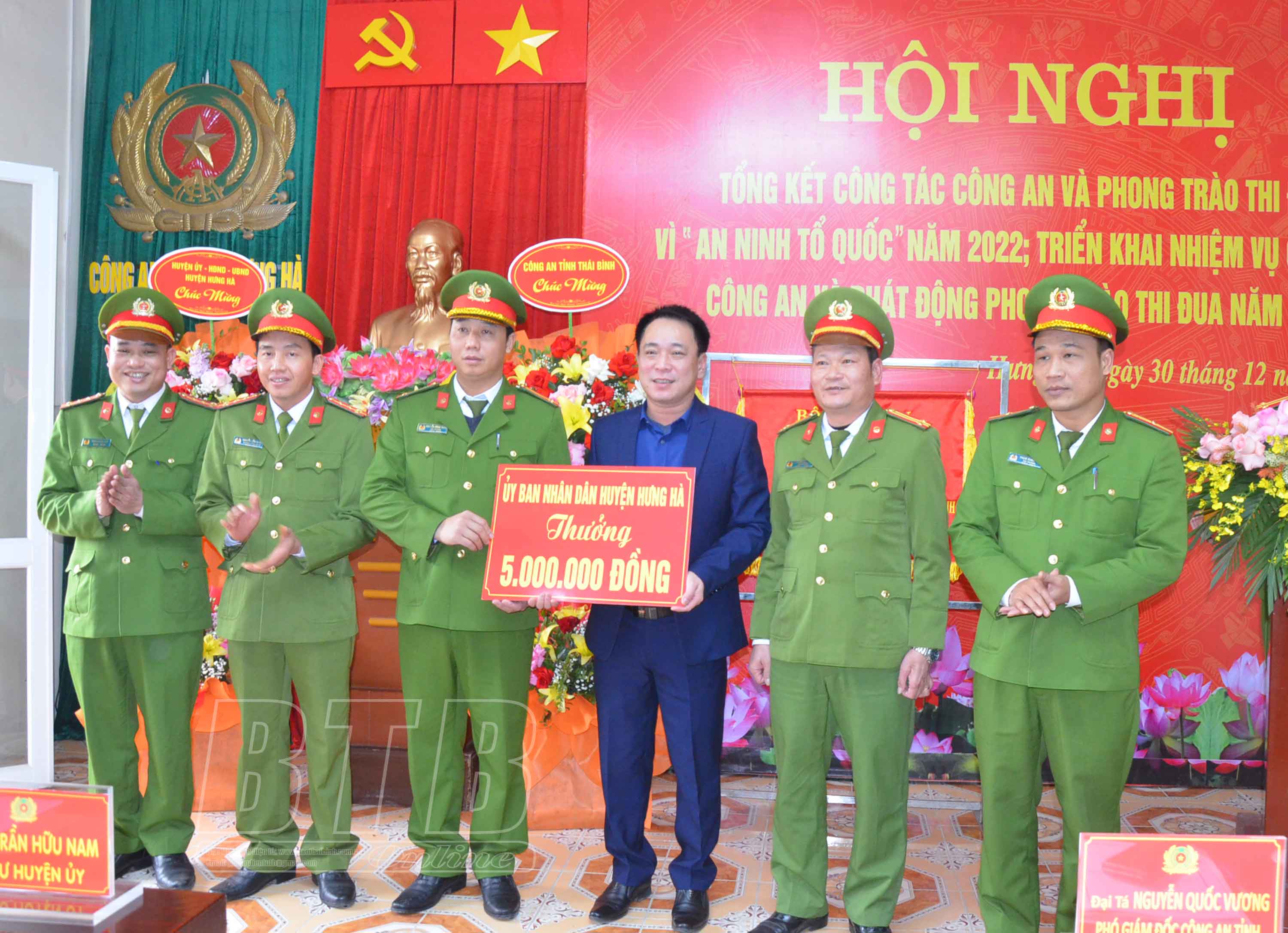 Cũng trong chiều ngày 30/12, Công an huyện Hưng Hà tổ chức tổng kết công tác công an và phong trào thi đua “Vì an ninh Tổ quốc” năm 2022; triển khai nhiệm vụ công tác công an và phát động phong trào thi đua năm 2023; khen thưởng cho các tập thể, cá nhân có thành tích xuất sắc trong năm 2022.