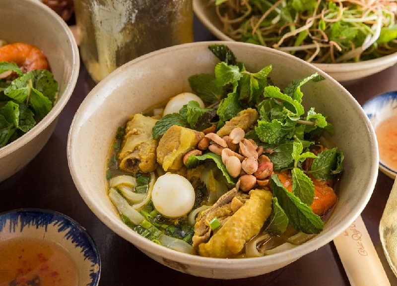 + Mì quảng: Món ăn mang đặc trưng riêng của xứ Quảng – Đà. Khác với bún, mì Quảng có sợi mì dài, nước dùng chỉ sâm sấp. Đi kèm là các topping tôm, thịt, trứng hoặc bò, gà, sứa, ếch,… khi ăn sẽ ăn cùng bánh tráng nướng và rau sống. Tuy đơn giản nhưng luôn để lại ấn tượng khó quên trong lòng người.