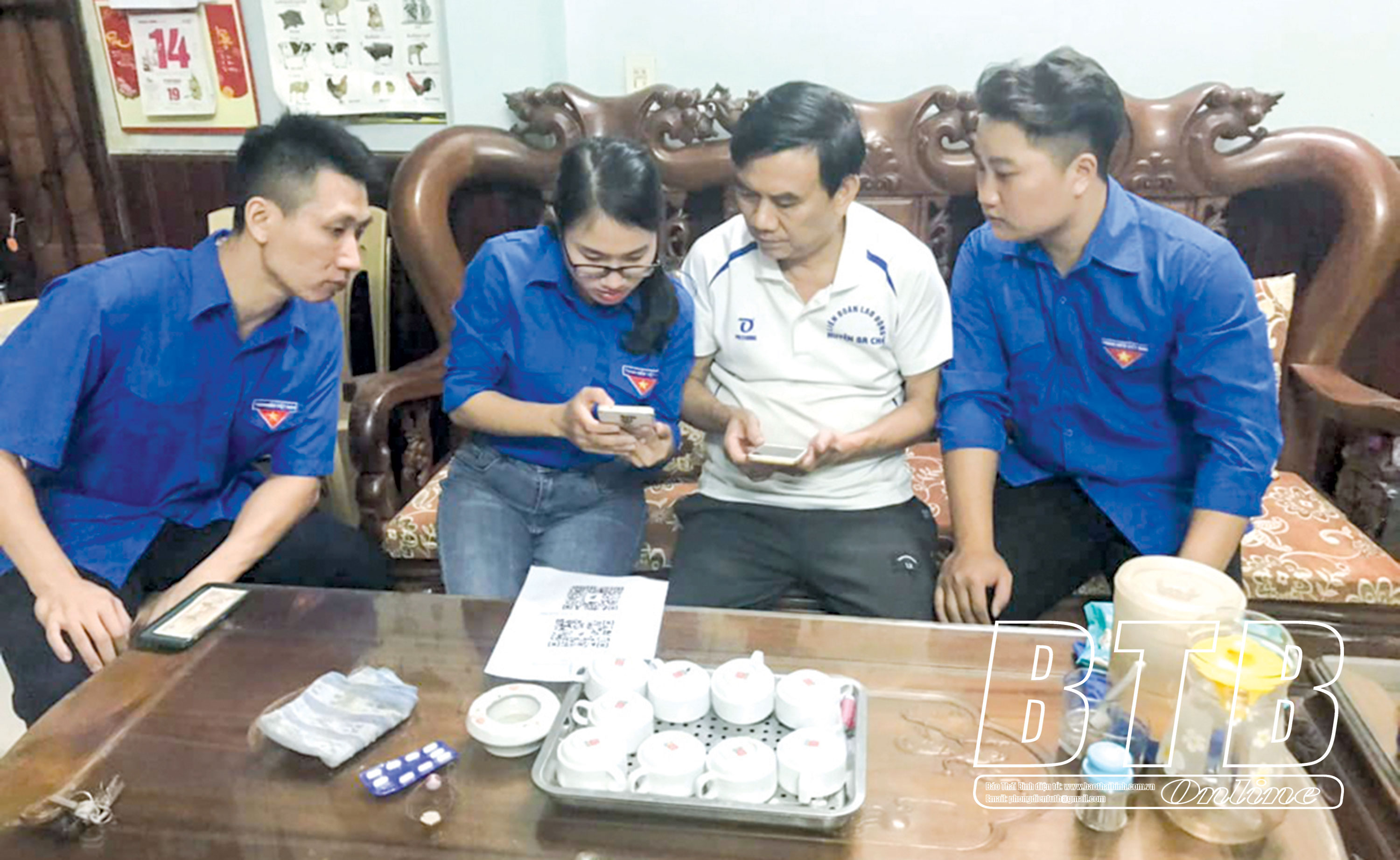 Đoàn viên thanh niên hướng dẫn người dân sử dụng dịch vụ công trực tuyến.