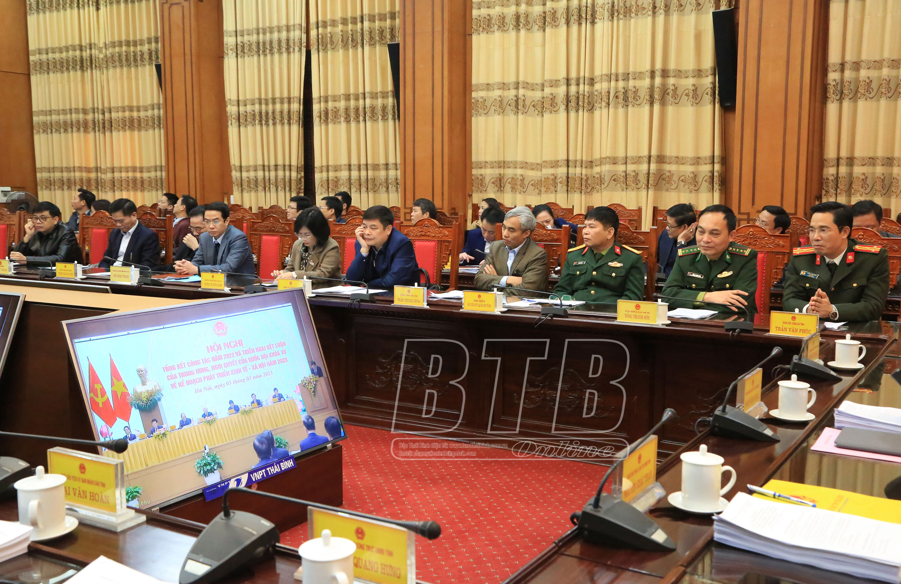 Tại điểm cầu Thái Bình, các đồng chí: Ngô Đông Hải, Ủy viên Ban Chấp hành Trung ương Đảng, Bí thư Tỉnh ủy; Nguyễn Tiến Thành, Phó Bí thư thường trực Tỉnh ủy, Chủ tịch HĐND tỉnh; Nguyễn Khắc Thận, Phó Bí thư Tỉnh ủy, Chủ tịch UBND tỉnh; các đồng chí Ủy viên Ban Thường vụ Tỉnh ủy, lãnh đạo UBND tỉnh tới dự.