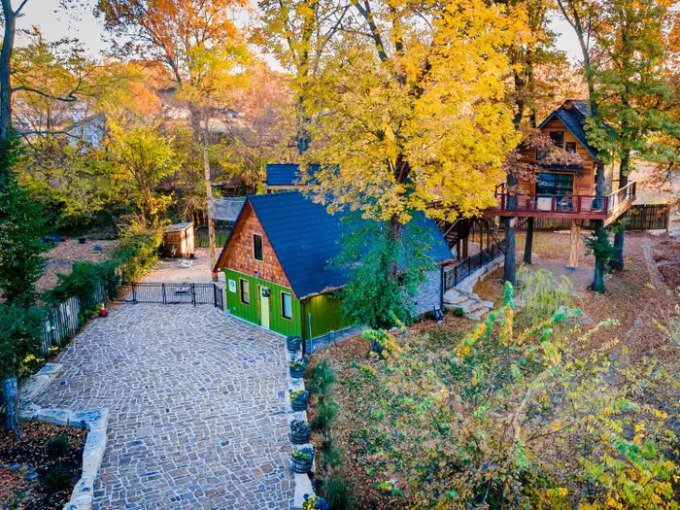 Ngôi nhà cây được làm trên 4 cái cây, có một cây cầu dẫn tới đài qua sát trên một cái cây khác. Ảnh: Insider