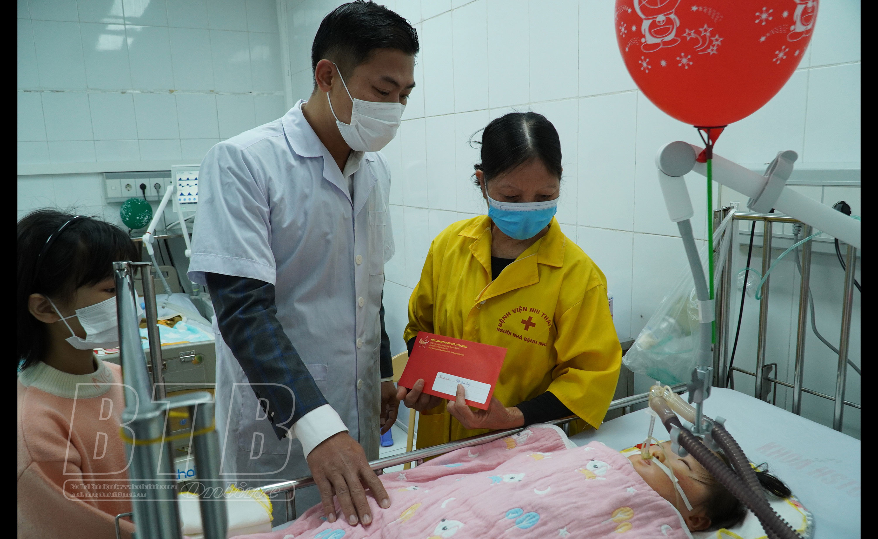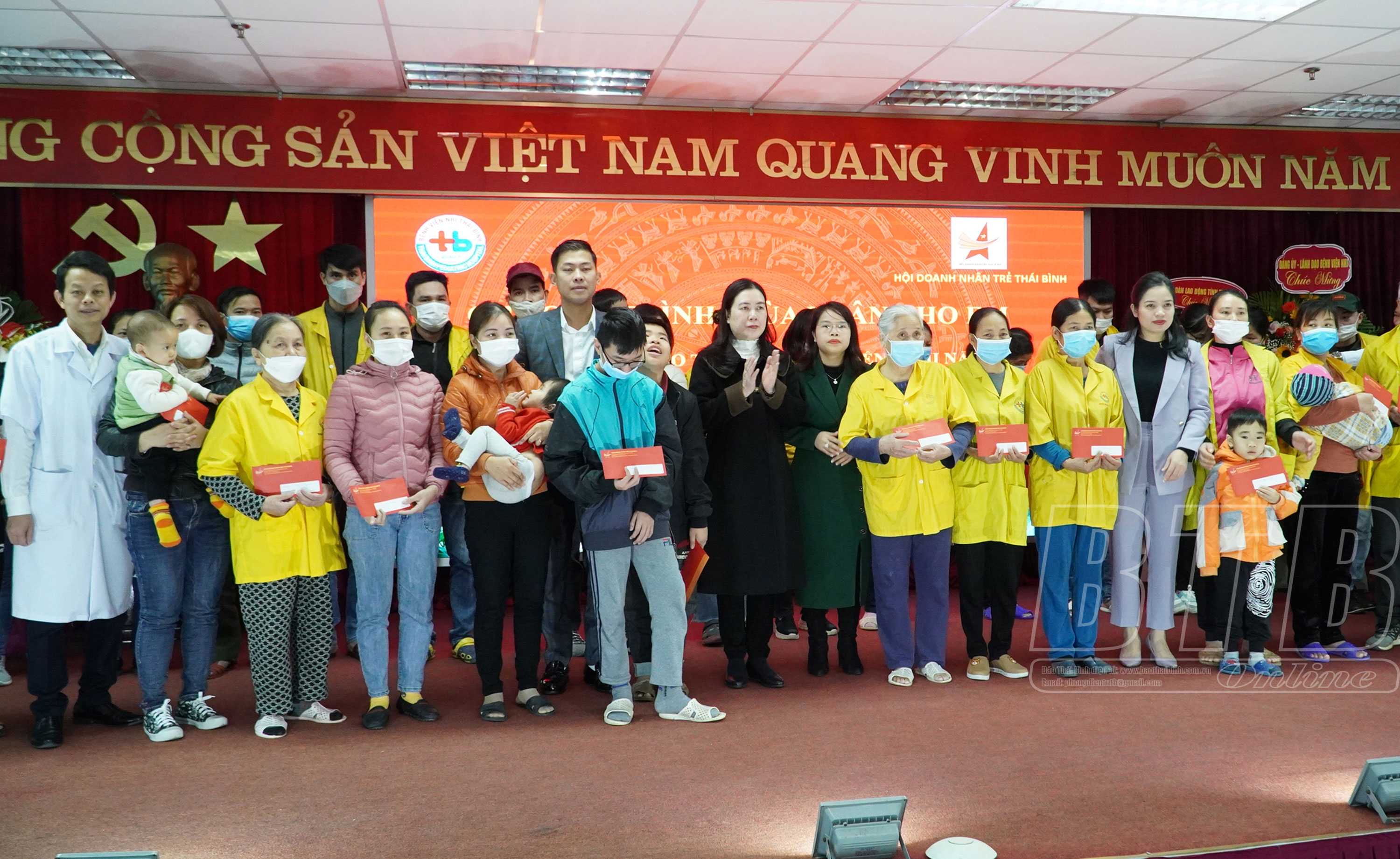 Các doanh nhân trẻ tỉnh trao quà cho các bệnh nhi tại Bệnh viện Nhi Thái Bình.