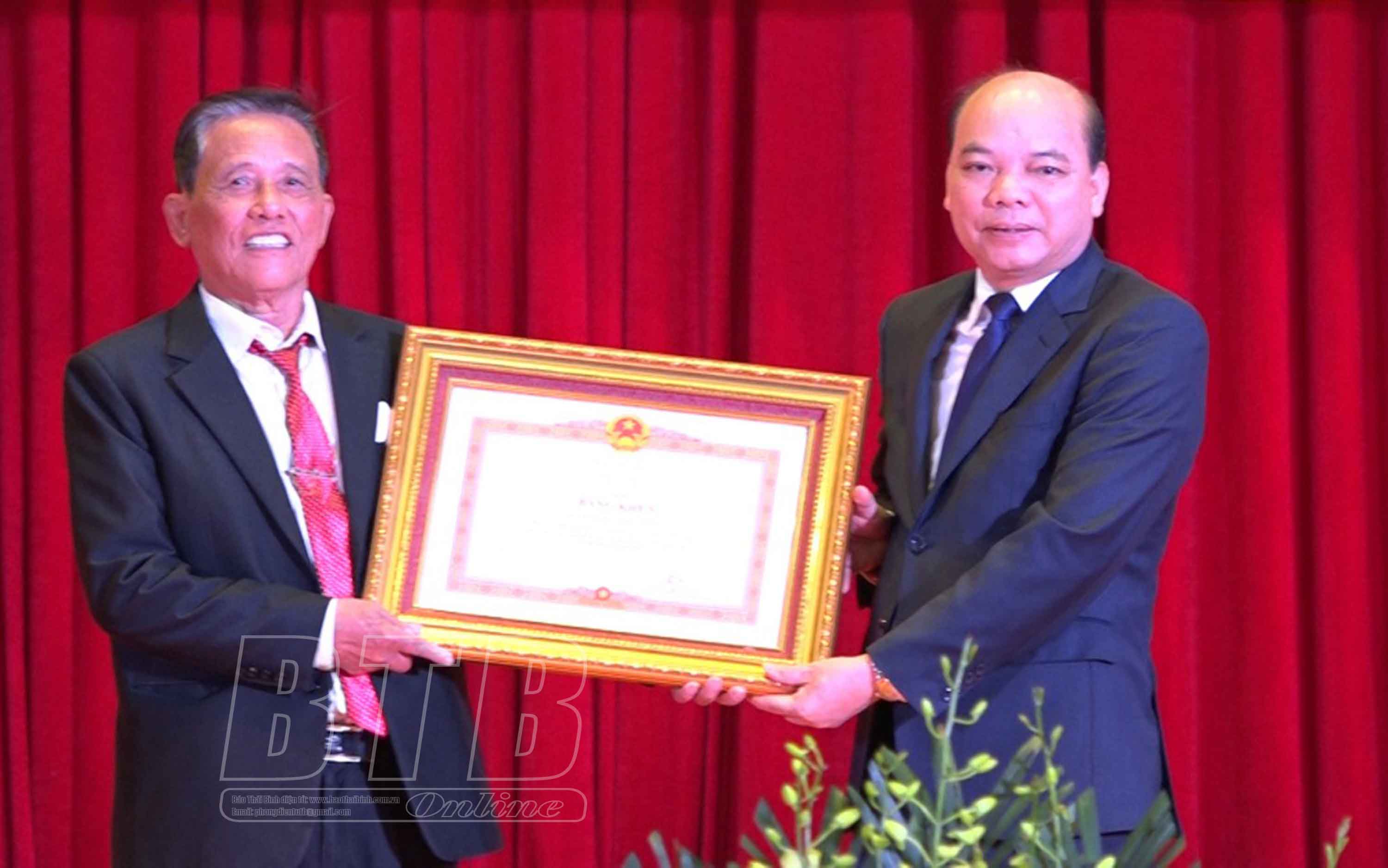 Đồng chí Đặng Thanh Giang, Ủy viên Ban Thường vụ Tỉnh ủy, Phó Chủ tịch thường trực HĐND tỉnh trao bằng khen của Thủ tướng Chính phủ cho các tập thể có thành tích xuất sắc.