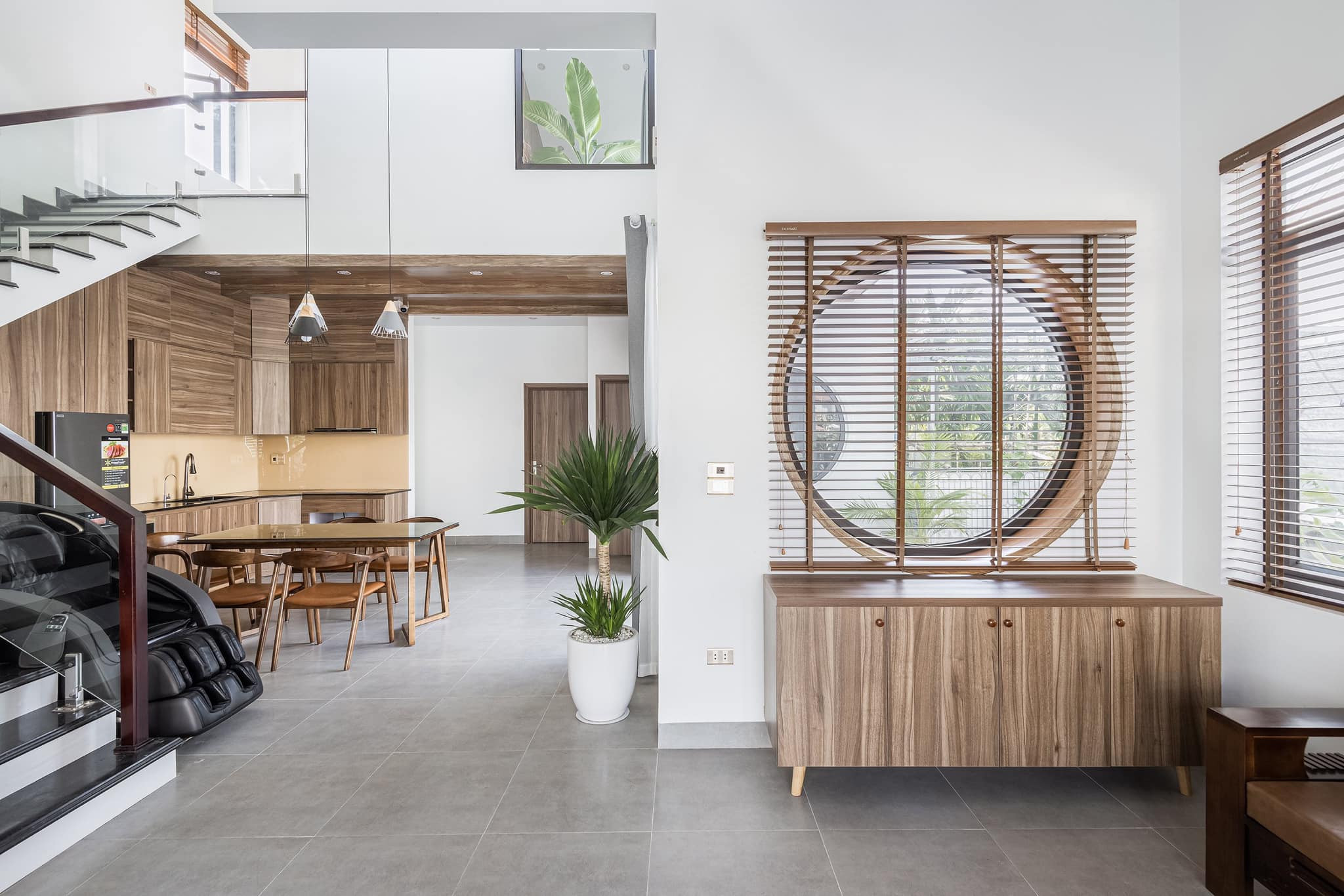 Căn nhà 90m2 có công năng 3 phòng ngủ, 1 phòng khách và những không gian sinh hoạt chung cho cả gia đình. Không gian được bố trí chặt chẽ nhưng vẫn có đủ ánh sáng tự nhiên. Đặc biệt, điều khiến gia chủ ưng ý nhất là gió lùa đối lưu giúp căn nhà luôn khô ráo, thông thoáng.