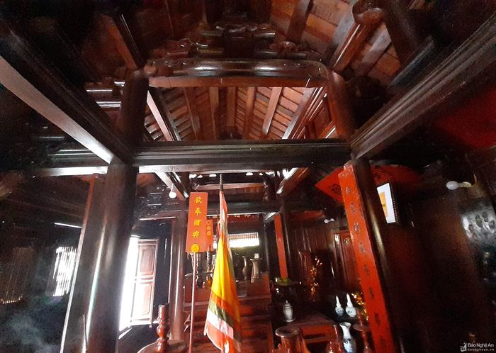 Thượng đường được xây dựng vào năm 1831, khung gỗ được điêu khắc chạm trổ công phu tạo nên một công trình nghệ thuật độc đáo.