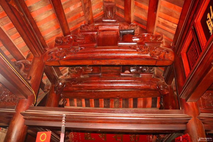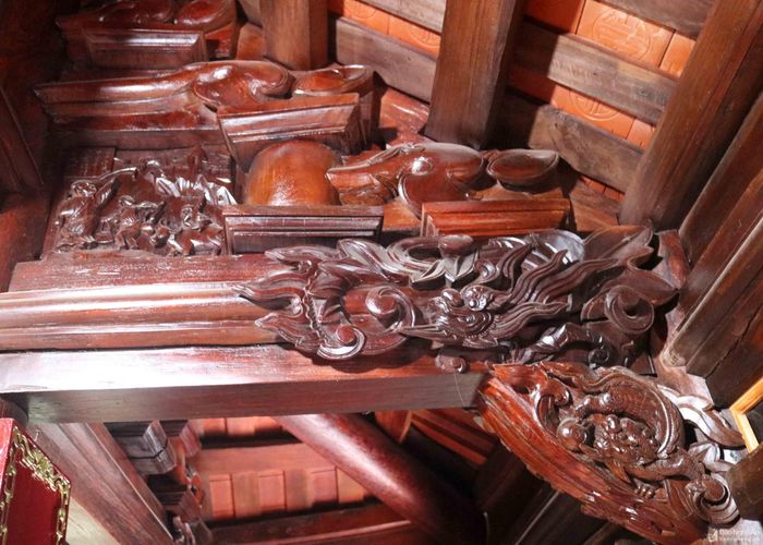 Mỗi vì nhà là một tác phẩm nghệ thuật đặc sắc. Các vì nóc, vì nách, kẻ hiên, bẫy hiên... đều được điêu khắc sinh động.