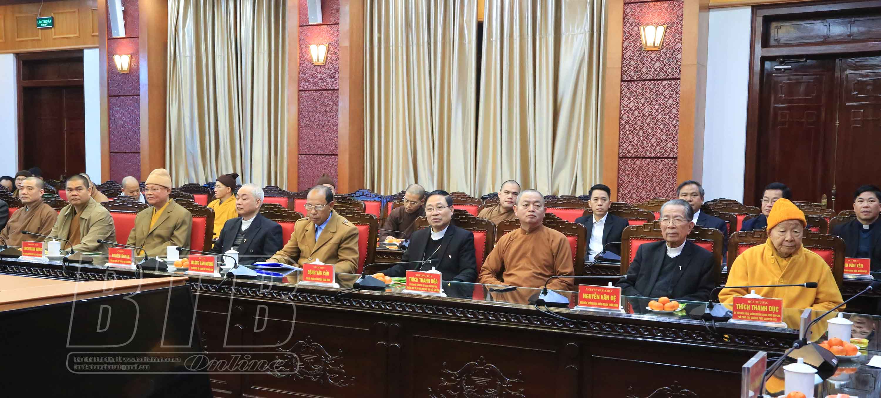 Đại biểu chức sắc các tôn giáo trên địa bàn tỉnh bày tỏ vui mừng trước những thành tựu tỉnh đã đạt được trong thời gian qua; cảm ơn sự quan tâm của các đồng chí lãnh đạo tỉnh, các sở, ban, ngành, đoàn thể và các địa phương trong tỉnh thời gian qua đã tạo điều kiện để các hoạt động tôn giáo diễn ra đúng với tôn chỉ mục đích, tuân thủ các quy định của pháp luật, quy định của địa phương. Các vị chức sắc các tôn giáo hứa sẽ tiếp tục tuyên truyền, vận động tín đồ, đồng bào có đạo đồng hành cùng cấp ủy, chính quyền và các tầng lớp nhân dân trong tỉnh xây dựng tỉnh ngày càng văn minh, giàu đẹp.