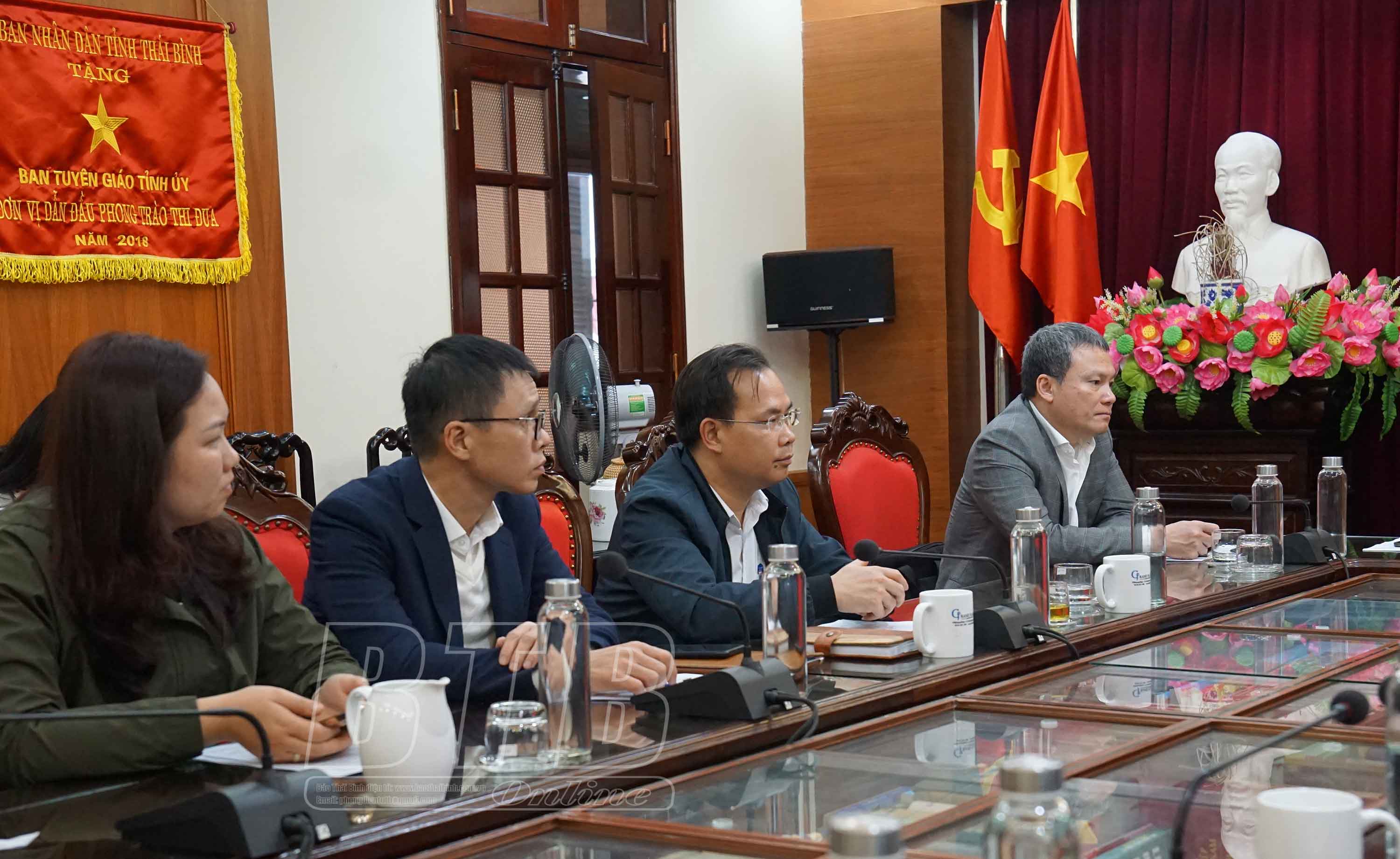 Đồng chí Trưởng ban Tuyên giáo Tỉnh ủy ghi nhận và đánh giá cao vai trò của các cơ quan báo chí trên địa bàn tỉnh trong việc tuyên truyền, định hướng các chủ trương, chính sách của tỉnh trong năm 2022 đến với các tầng lớp nhân dân. Đồng chí mong muốn công tác thông tin tuyên truyền trên các loại hình báo chí thời gian tới cần đa dạng hơn nữa, tạo không khí thi đua sôi nổi trong các tầng lớp nhân dân ngay từ những tháng đầu của năm 2023, đóng góp vào sự phát triển kinh tế - xã hội của tỉnh.