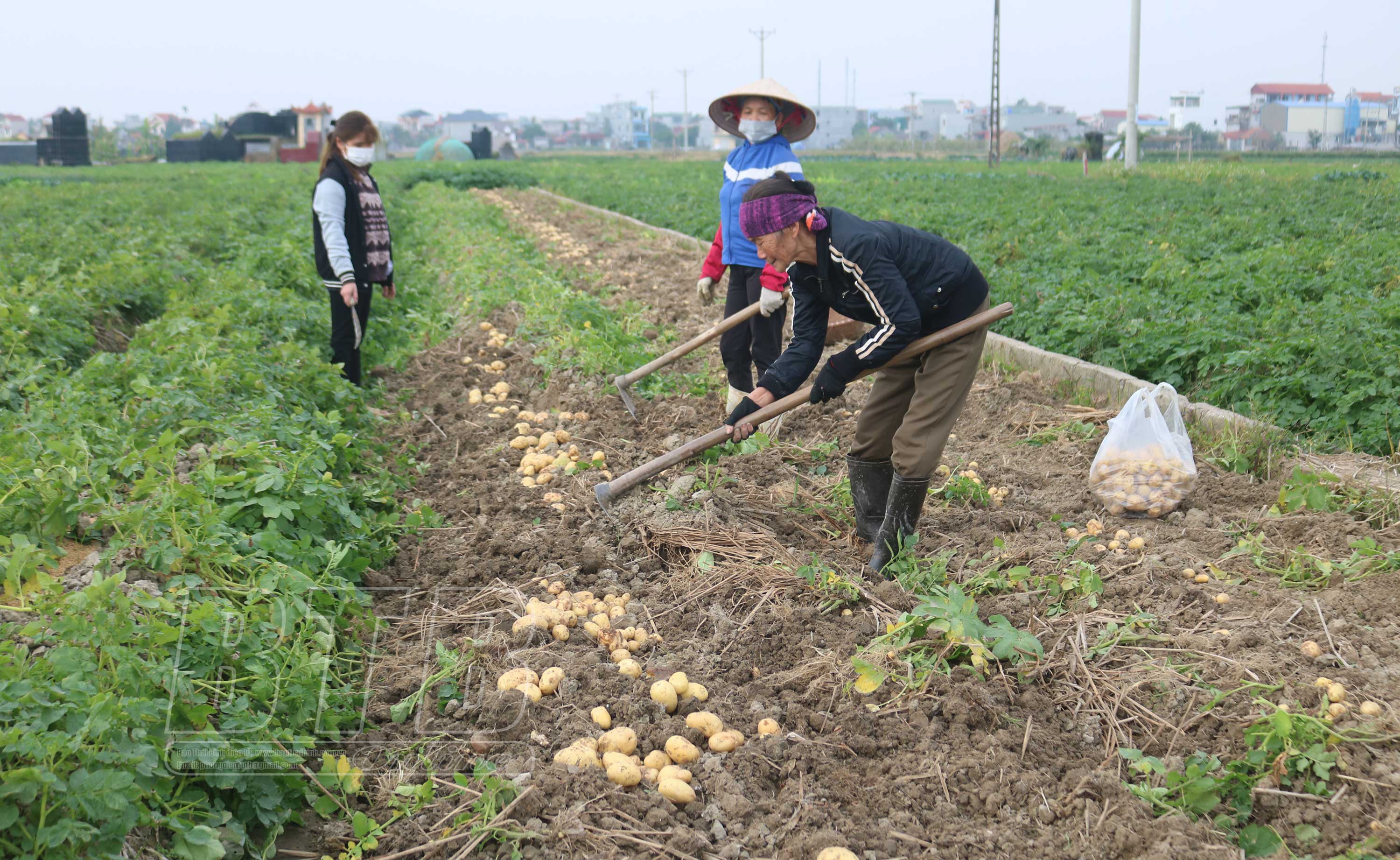 Toàn huyện Đông Hưng trồng khoảng 500ha khoai tây vụ đông, mỗi năm cung cấp ra thị trường hàng trăm tấn củ. Một số HTX DVNN đã đứng lên mượn ruộng của bà con trồng khoai tây, đồng thời liên kết với các công ty trong và ngoài tỉnh tiêu thụ khoai tây cho bà con như HTX DVNN xã Mê Linh, HTX DVNN xã Trọng Quan, HTX DVNN xã Đông Xá... Năm nay khoai tây năng suất không cao, thậm chí có ruộng lượng củ giảm tới 40%, củ nhỏ nhiều hơn năm ngoái lại còn bị nứt, vỏ sạm bán không được giá. Một phần do thời tiết, một phần do giống không bảo đảm.