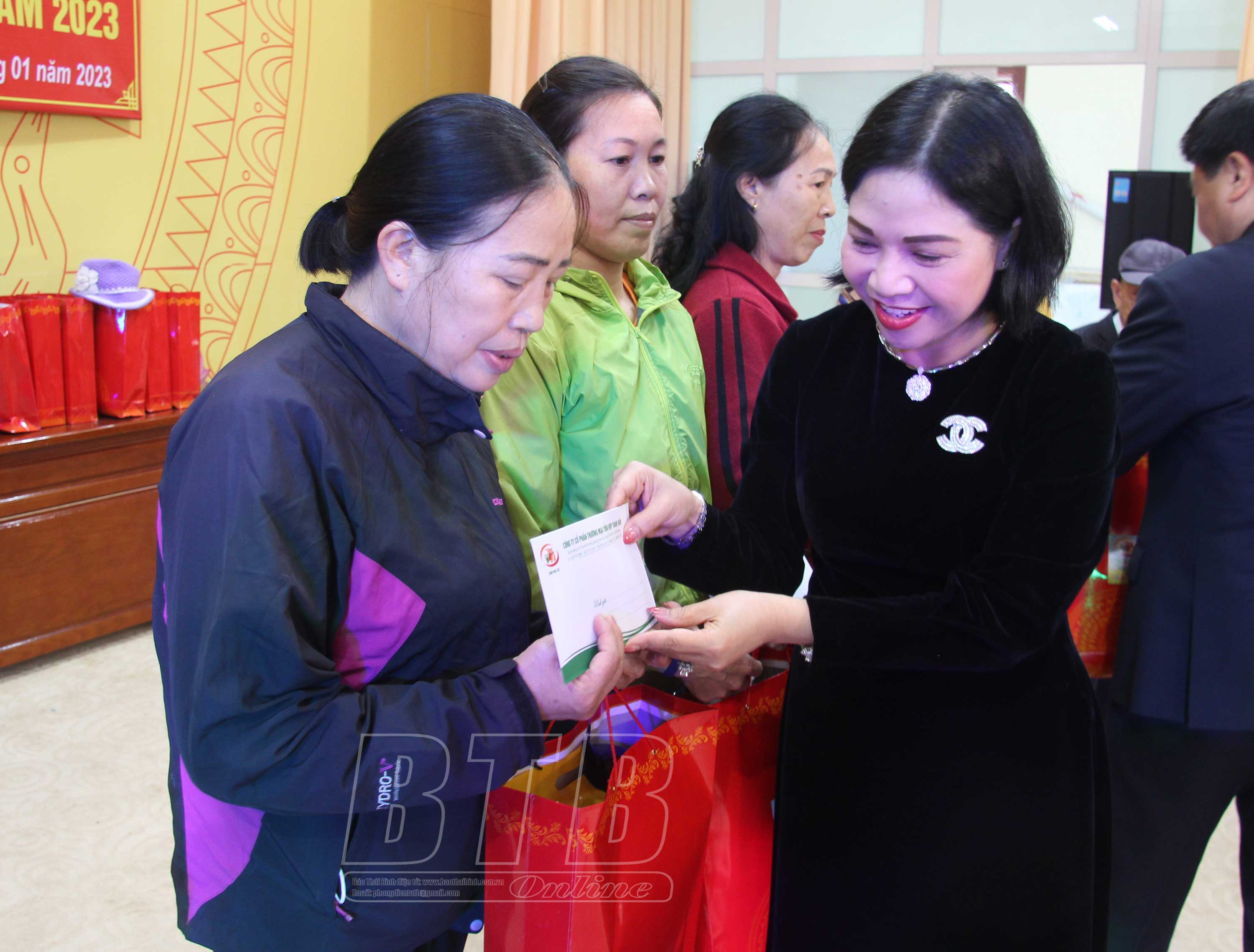 Tại thị trấn Đông Hưng (Đông Hưng), xã Chí Hòa (Hưng Hà), đồng chí Phó Chủ tịch thường trực UBND tỉnh cùng với các đơn vị tài trợ đã trao 184 suất quà cho các hộ nghèo, cận nghèo, có hoàn cảnh khó khăn. Đồng chí gửi lời chúc đến các hộ gia đình đón tết vui vẻ, hạnh phúc, đầm ấm và mong muốn cấp ủy, chính quyền địa phương tiếp tục quan tâm, giúp đỡ các hộ nghèo, cận nghèo trên địa bàn có sinh kế, nâng cao thu nhập để thoát nghèo bền vững.