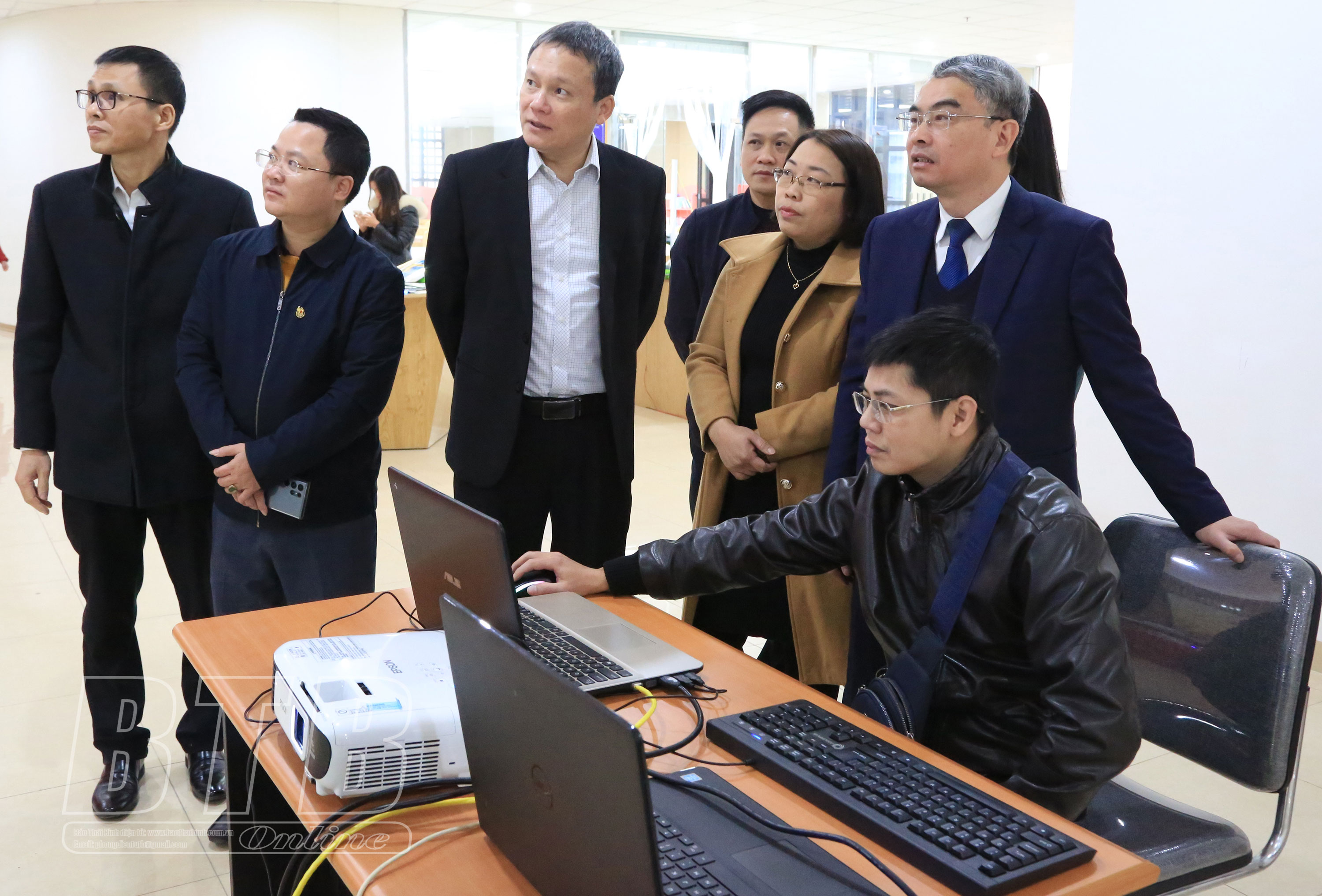Đồng chí Phạm Đồng Thụy, Ủy viên Ban Thường vụ, Trưởng ban Tuyên giáo Tỉnh ủy tham quan phòng trưng bày báo xuân.
