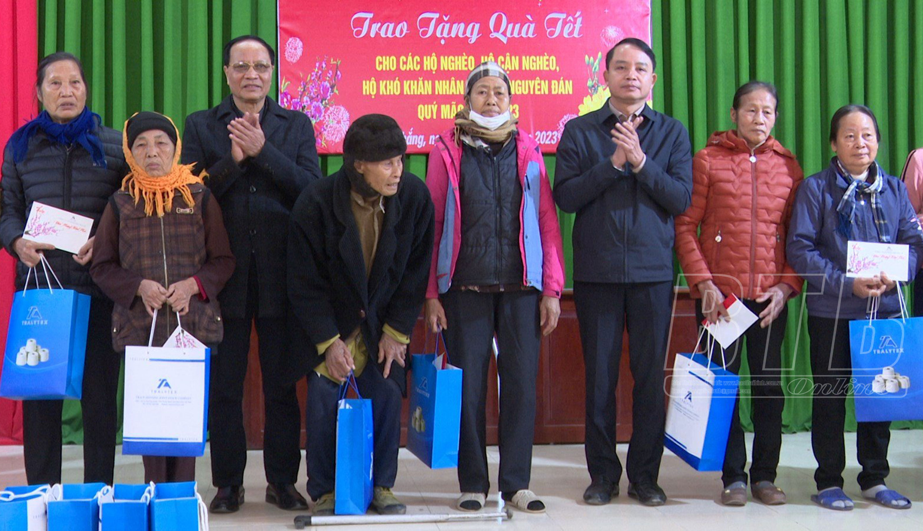 Sáng ngày 17/1, các đồng chí: Nguyễn Quang Hưng, Ủy viên Ban Thường vụ Tỉnh ủy, Phó Chủ tịch thường trực UBND tỉnh; Vũ Ngọc Trì, Tỉnh ủy viên, Phó Chủ tịch HĐND tỉnh và đại diện lãnh đạo Công ty Cổ phần Sợi Trà Lý tổ chức trao quà tết cho hộ nghèo, hộ cận nghèo, hộ có hoàn cảnh khó khăn tại xã Vũ Thắng (Kiến Xương).