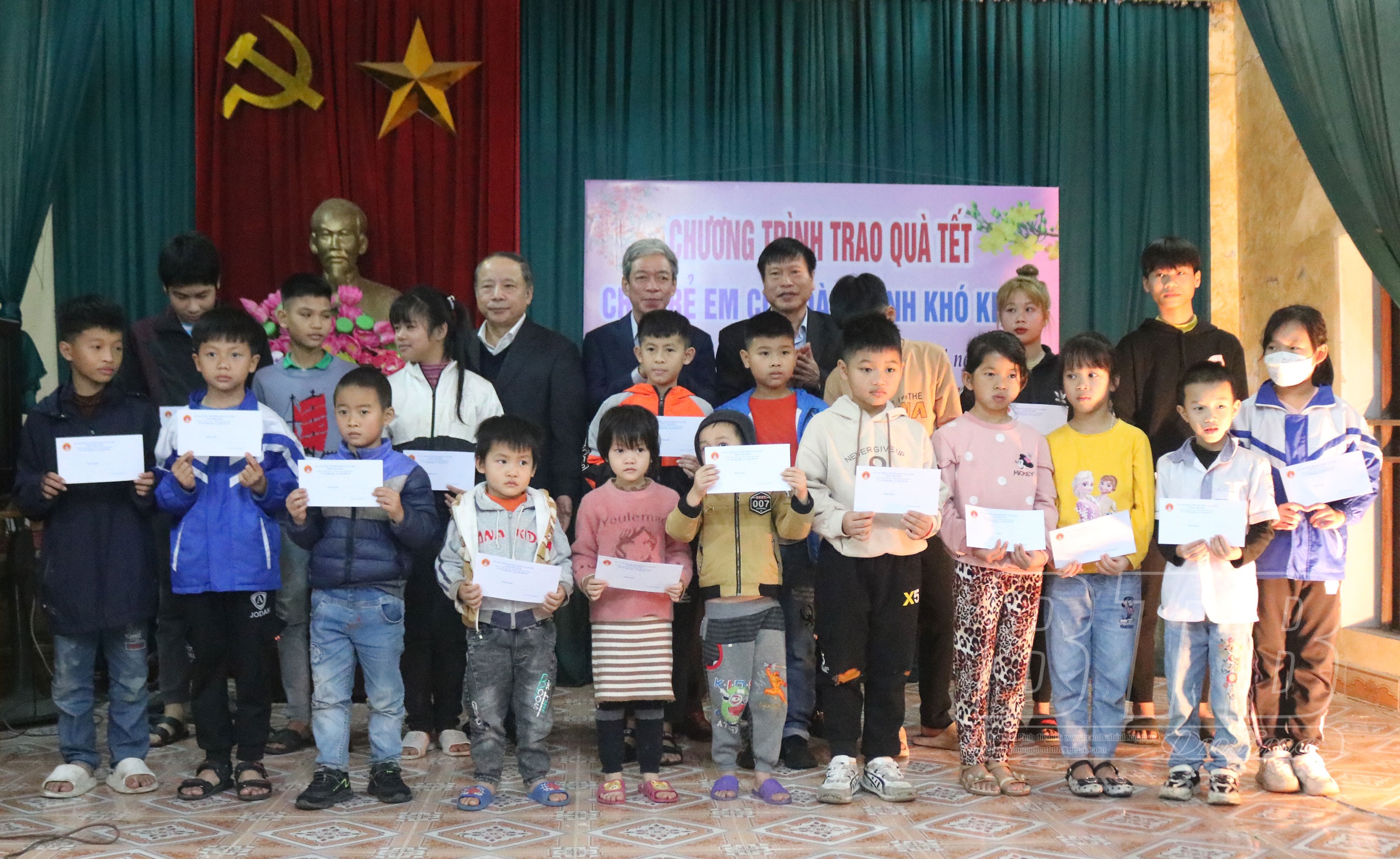 Các tổ chức, đơn vị trao quà tết cho trẻ em có hoàn cảnh khó khăn tại xã Quỳnh Hồng (Quỳnh Phụ).
