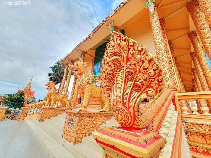 Các công trình này đều có gam màu vàng chủ đạo kết hợp cùng hệ thống hoa văn nhiều màu sắc làm nổi bật phong cách kiến trúc Khmer.