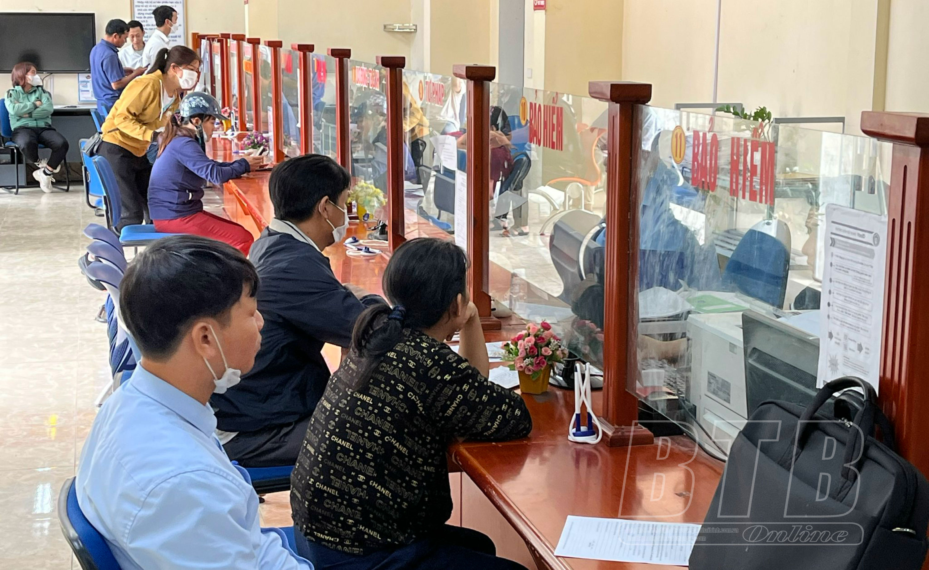 Người dân tới giải quyết thủ tục hành chính tại Bộ phận Tiếp nhận và trả kết quả huyện Quỳnh Phụ.