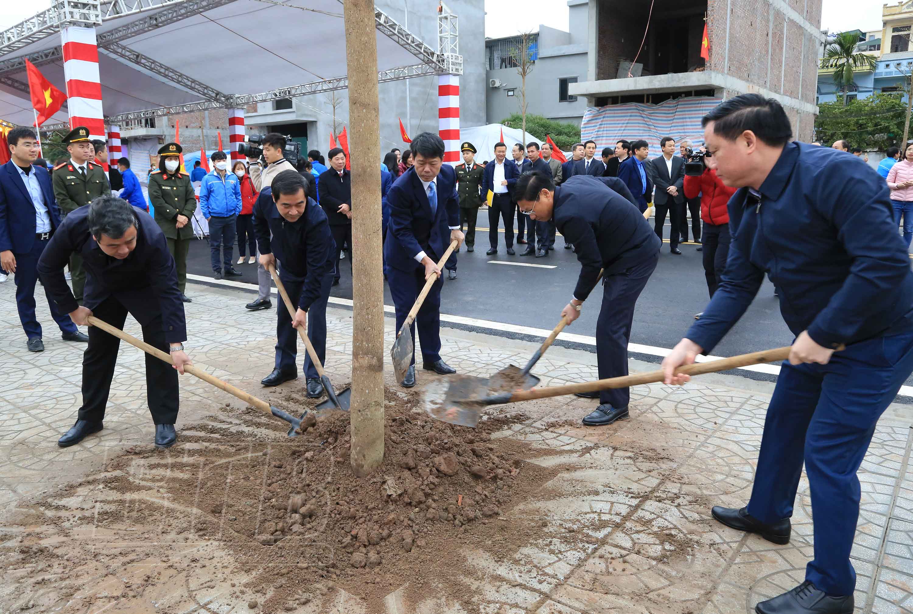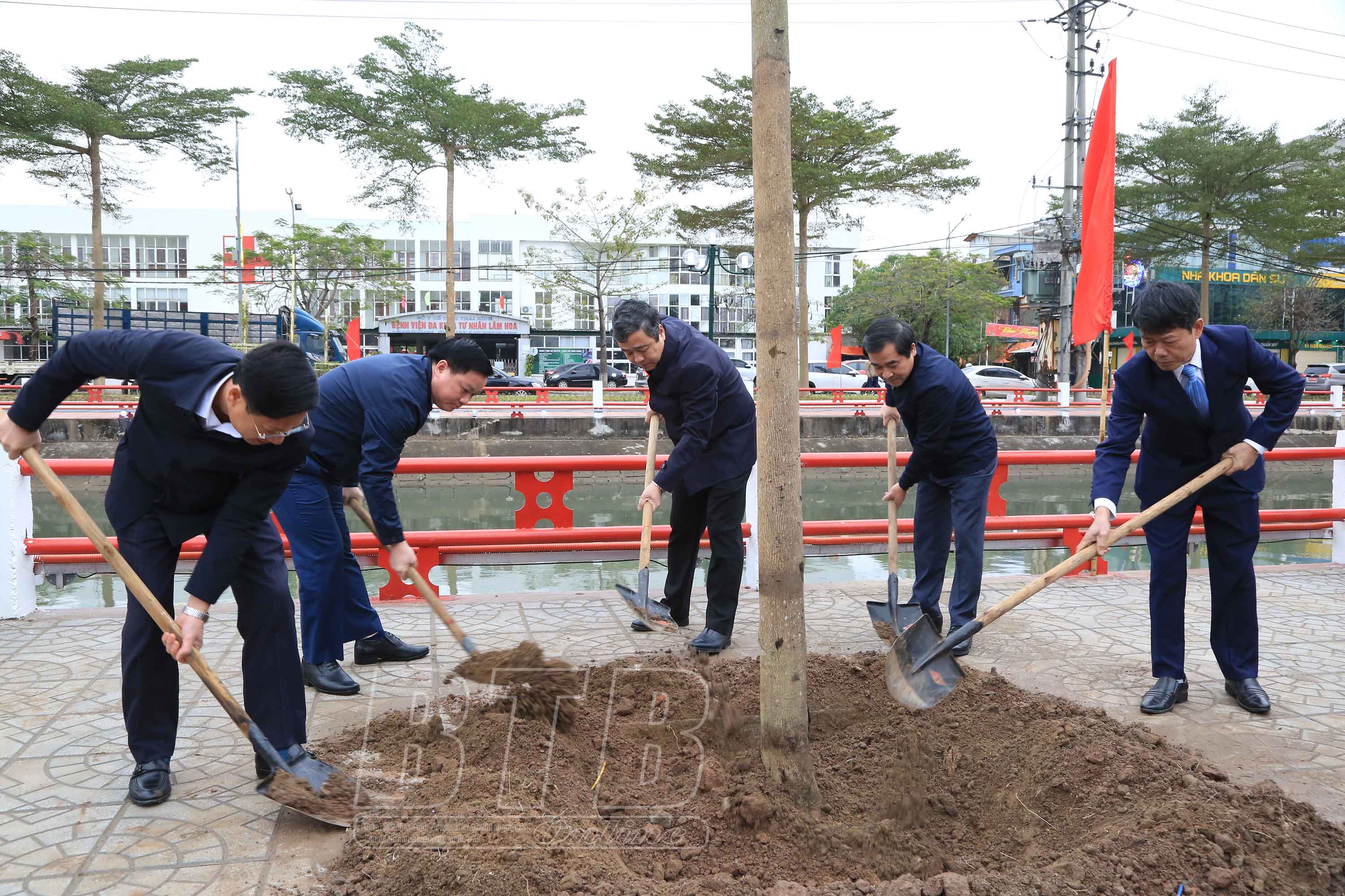 Ngay sau lễ phát động, các đồng chí lãnh đạo tỉnh, thành phố và nhân dân đã tham gia trồng cây xanh tại tuyến đường Đinh Tiên Hoàng.