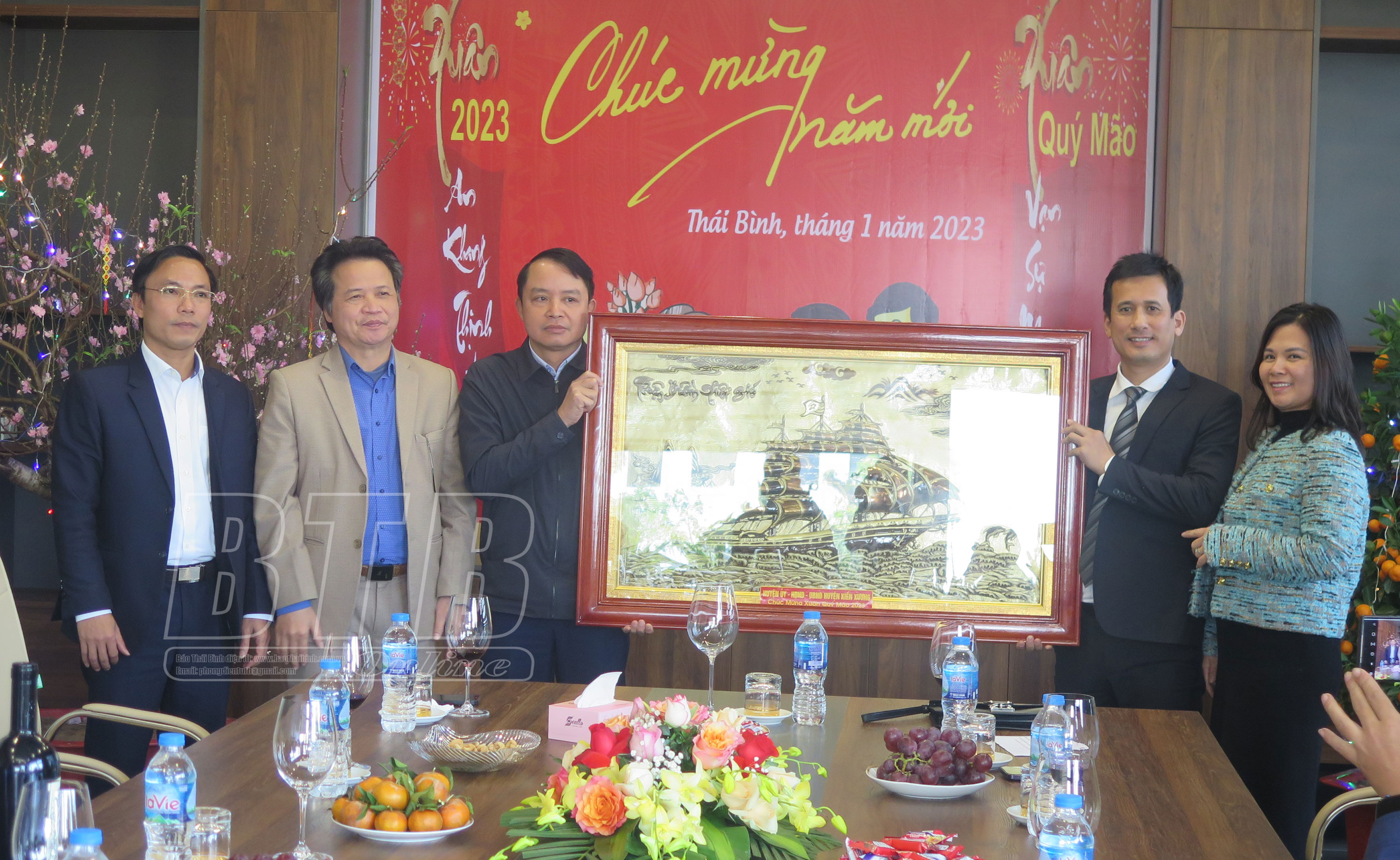 Gửi lời chúc mừng năm mới sức khỏe, an khang thịnh vượng đến lãnh đạo cùng toàn thể người lao động trong các doanh nghiệp, các đồng chí lãnh đạo huyện Kiến Xương đánh giá cao những đóng góp tích cực của các doanh nghiệp trong thời gian qua đối với sự phát triển kinh tế - xã hội của huyện; đồng thời mong muốn các doanh nghiệp tiếp tục khắc phục mọi khó khăn, nâng cao năng suất, chất lượng sản phẩm, mở rộng quy mô, ngành nghề lĩnh vực sản xuất kinh doanh, dịch vụ để đóng góp nhiều hơn nữa vào sự phát triển kinh tế - xã hội của huyện. Lãnh đạo huyện Kiến Xương cũng khẳng định sẽ luôn tạo mọi điều kiện tốt nhất để hỗ trợ cho các doanh nghiệp phát triển.