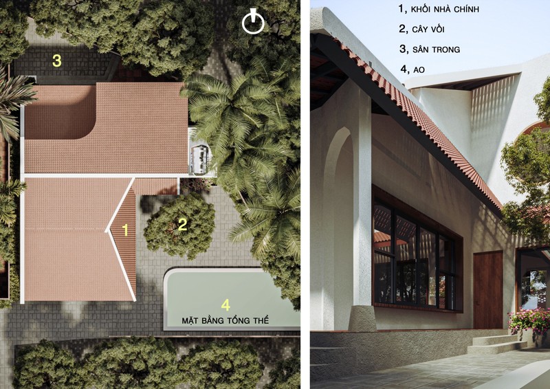 Ngôi nhà truyền thống có cả vườn và ao nhưng thiết kế mang tính hiện đại hơn.