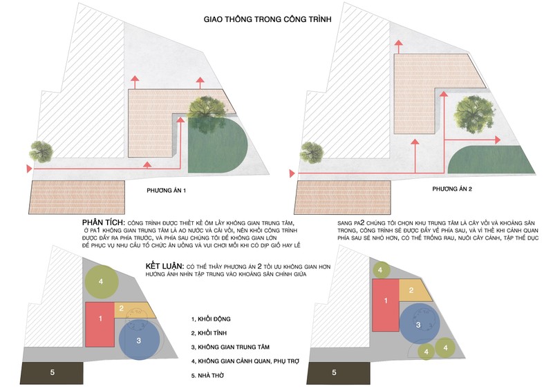 Lối giao thông trong công trình được dự kiến 2 phương án cho gia chủ lựa chọn.