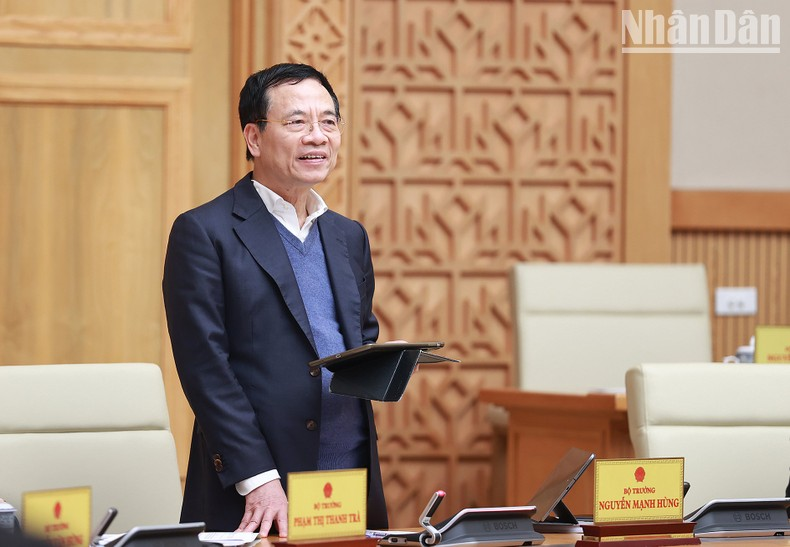 Bộ trưởng Thông tin và Truyền thông Nguyễn Mạnh Hùng phát biểu. (Ảnh: TRẦN HẢI).