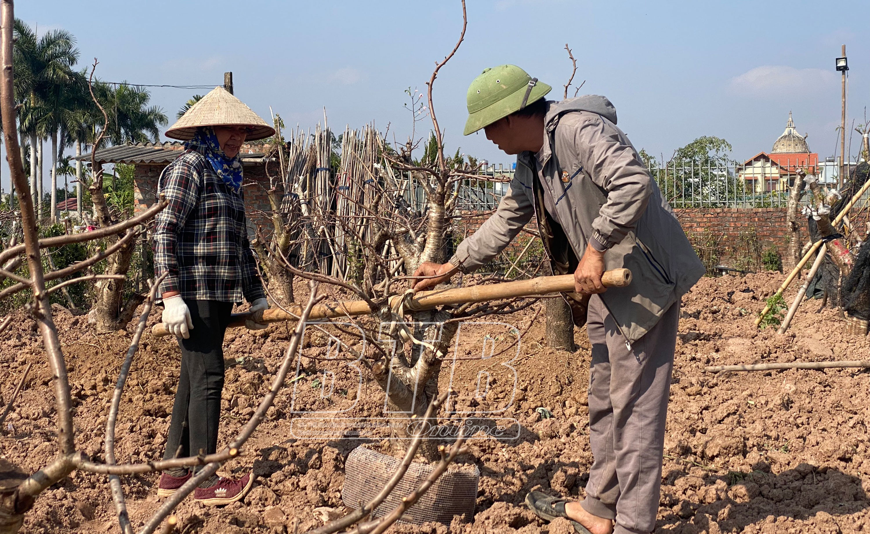 Cùng thời điểm này, không khí lao động của các hộ dân trồng đào tại phường Hoàng Diệu cũng đang rất hối hả. Những người nông dân đang tập trung thu gom những gốc đào đã cho thuê và chăm sóc các gốc đào mới. Bỏ lại phía sau những khó khăn khi đào chết hàng loạt hồi cuối năm 2022, các hộ dân đang rất quyết tâm chuẩn bị cho vụ mới.
