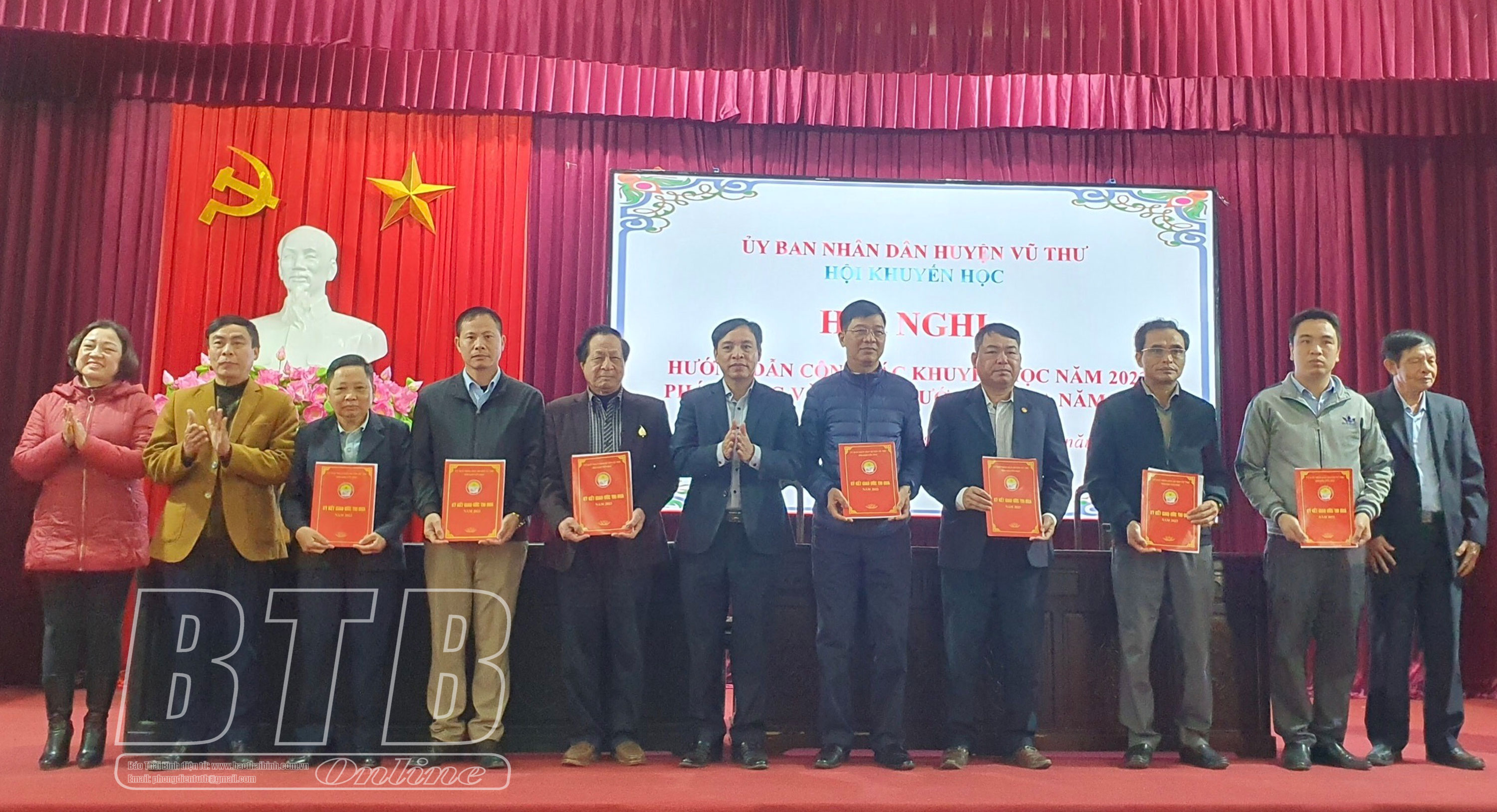 Đại diện các cụm thi đua khuyến học huyện Vũ Thư ký giao ước thực hiện công tác khuyến học năm 2023.