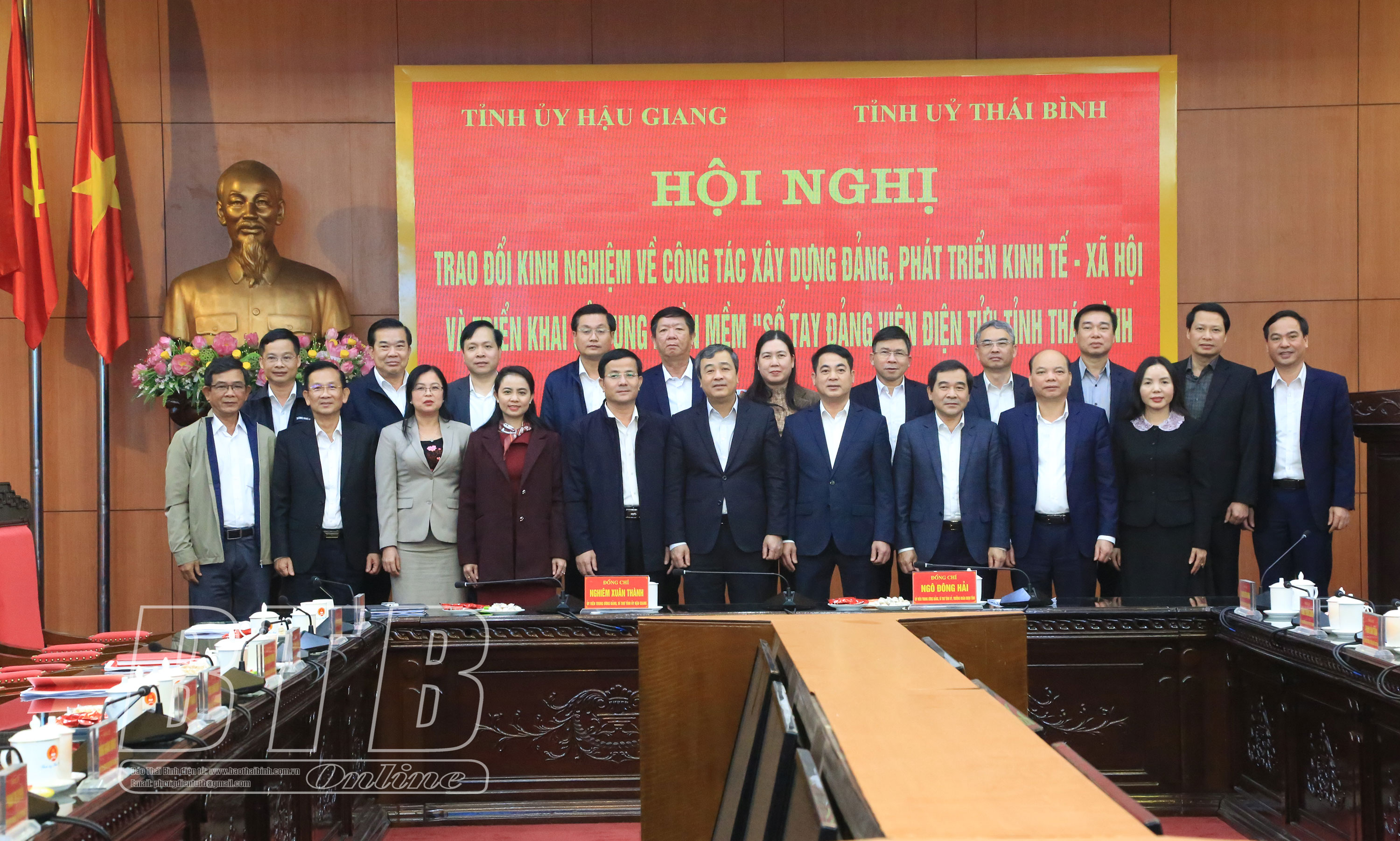Đồng chí chúc mừng những thành tựu tỉnh Hậu Giang đã đạt được trong thời gian qua, đồng thời chúc Đảng bộ, chính quyền và nhân dân tỉnh Hậu Giang trong thời gian tới sẽ tiếp tục gặt hái được nhiều thành công hơn nữa trong tiến trình xây dựng và phát triển. Thái Bình sẵn sàng chia sẻ kinh nghiệm hỗ trợ Tỉnh ủy Hậu Giang trong quá trình triển khai mềm “Sổ tay đảng viên điện tử”.